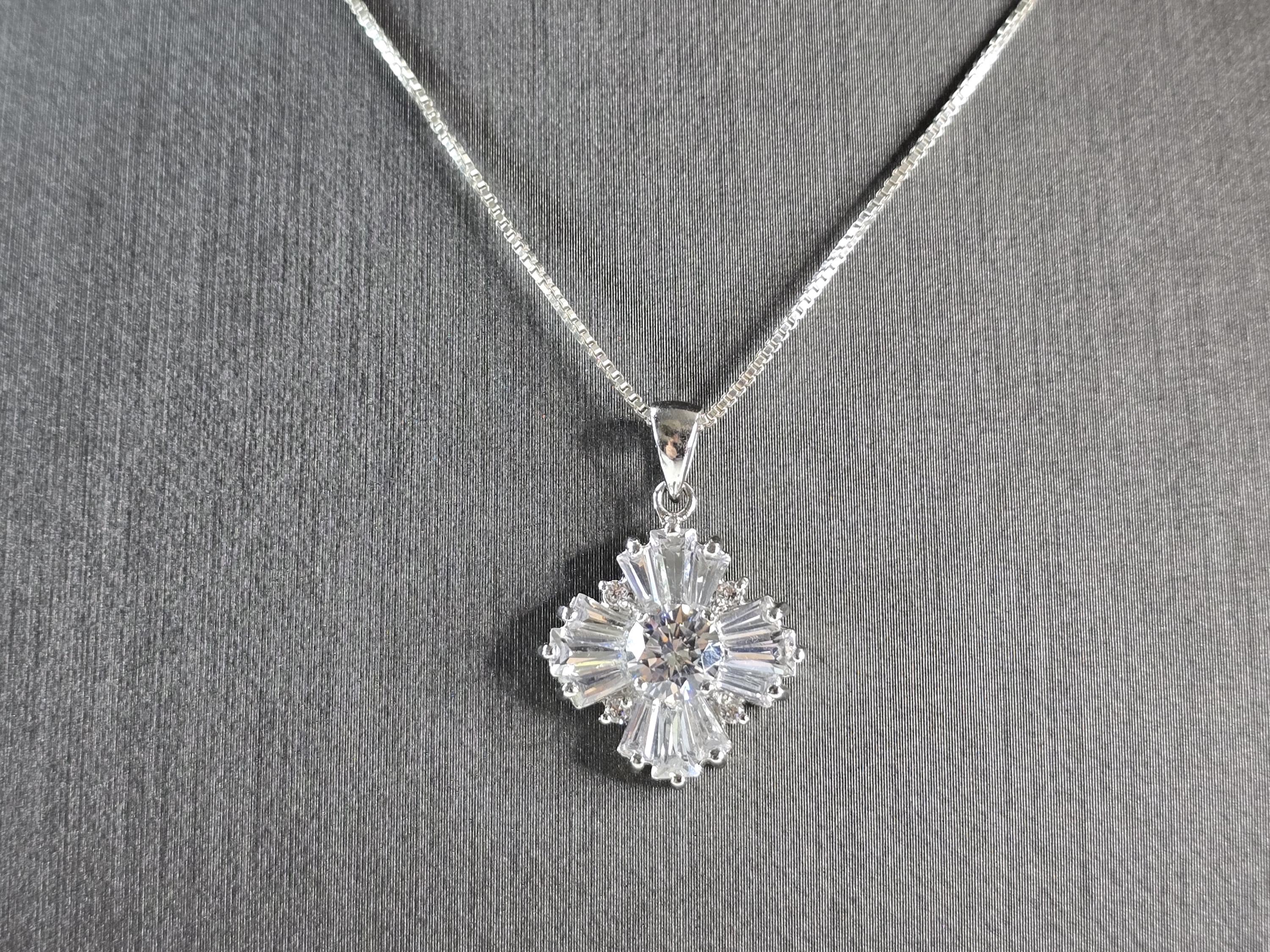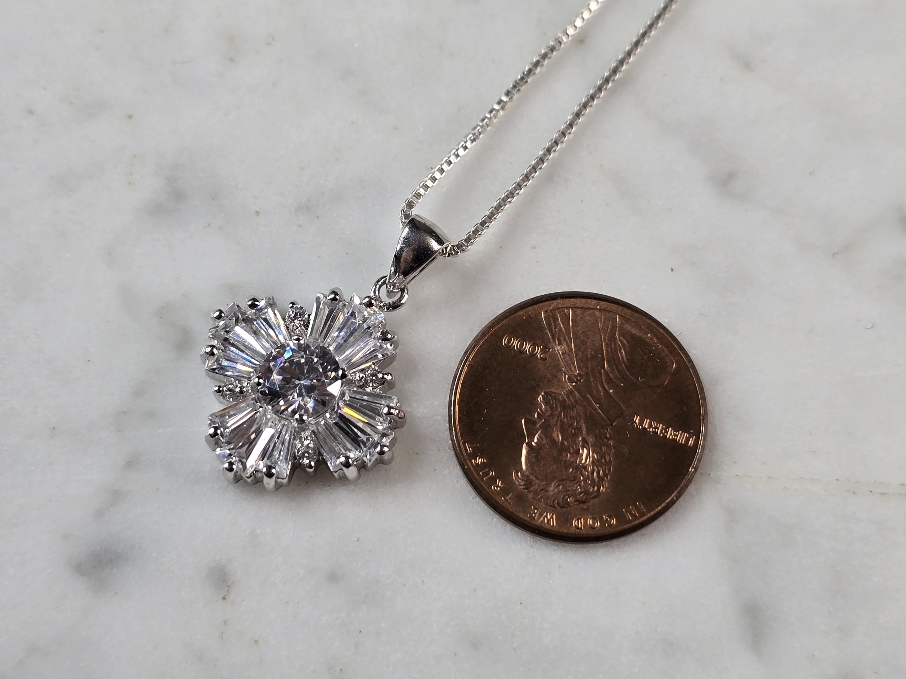 A WOMENS VINTAGE ESTATE STERLING SILVER CZ SNOWFLAKE PENDANT WITH NECKLACE. TOGETHER THEY WEIGH 5.1g. THE PENDANT MEASURES 7/8" LONG BY 5/8" WIDE. THE NECKLACE MEASURES 18" LONG. MAKES A GREAT GIFT FOR THAT SOMEONE SPECIAL. ANY QUESTIONS, PLEASE ASK. BE SURE TO CHECK OUT OUR OTHER ITEMS FOR SALE.