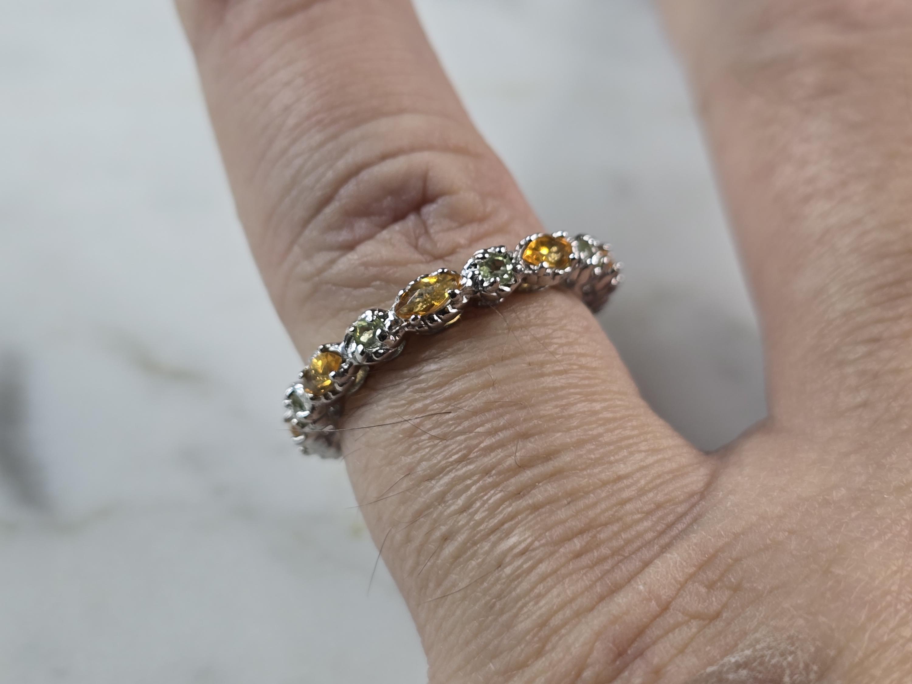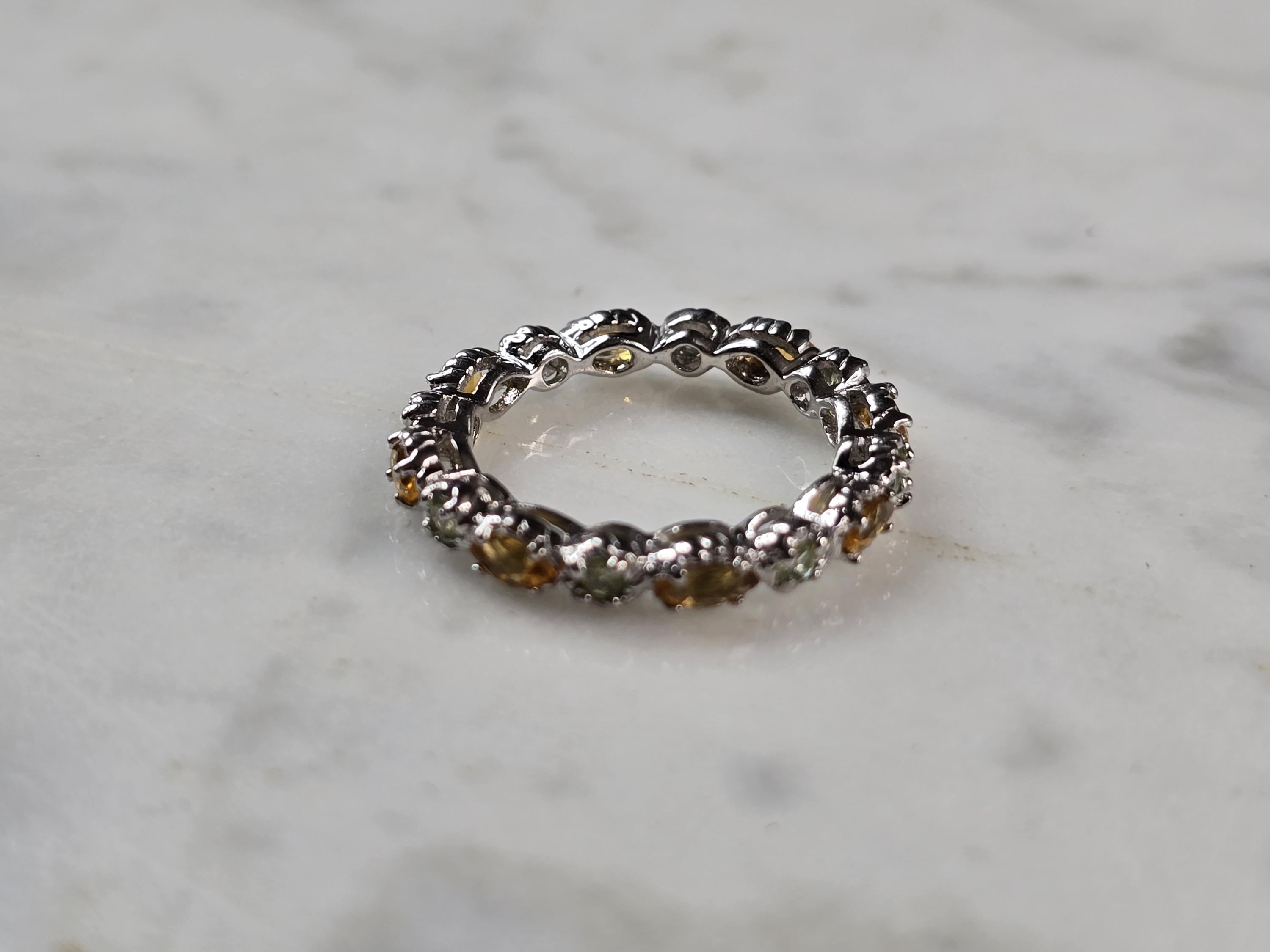 A WOMENS VINTAGE ESTATE STERLING SILVER CITRINE & PERIDOT COLORED RING. THE RING SIZE IS A SIZE 6.0, AND WEIGHS 2.5g. THE WIDTH OF THE RING IS 1/8". THIS WOULD MAKE A NICE GIFT FOR THAT SOMEONE SPECIAL. ANY QUESTIONS PLEASE DO NOT HESITATE TO ASK. BE SURE TO CHECK OUT MY OTHER GREAT ITEMS UP FOR SALE. THANK YOU.