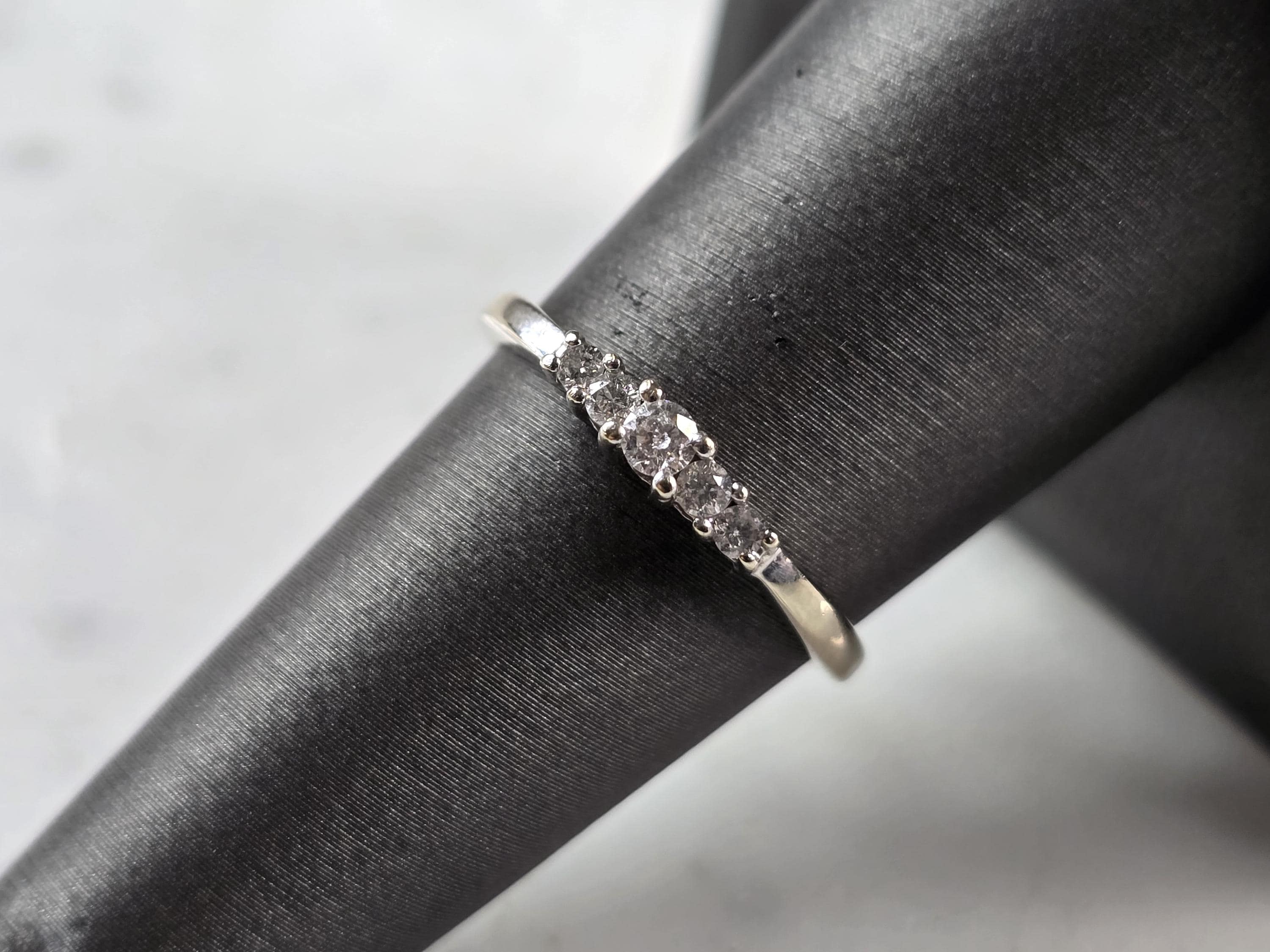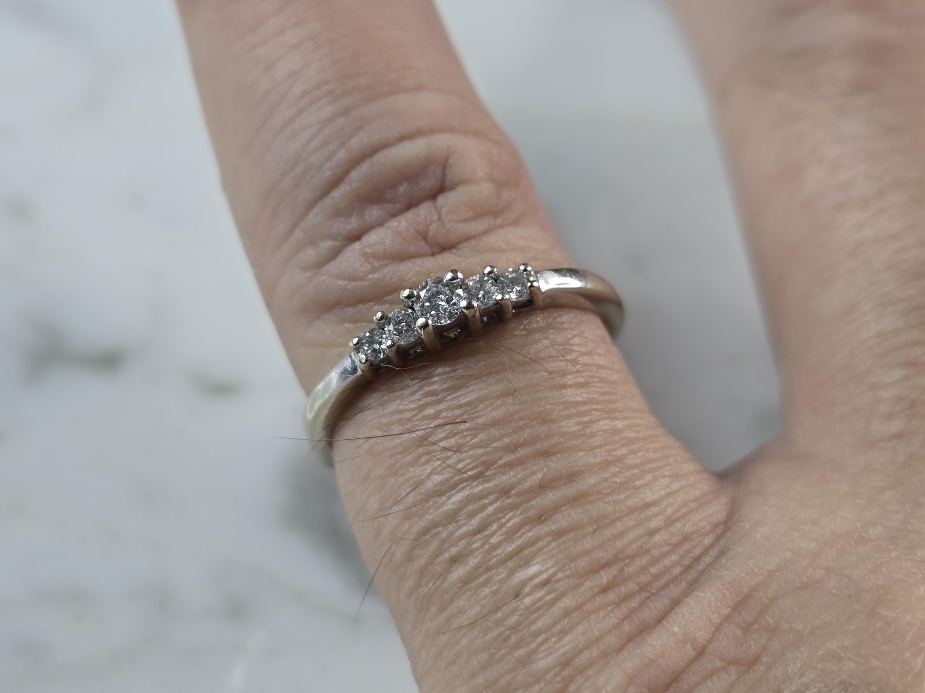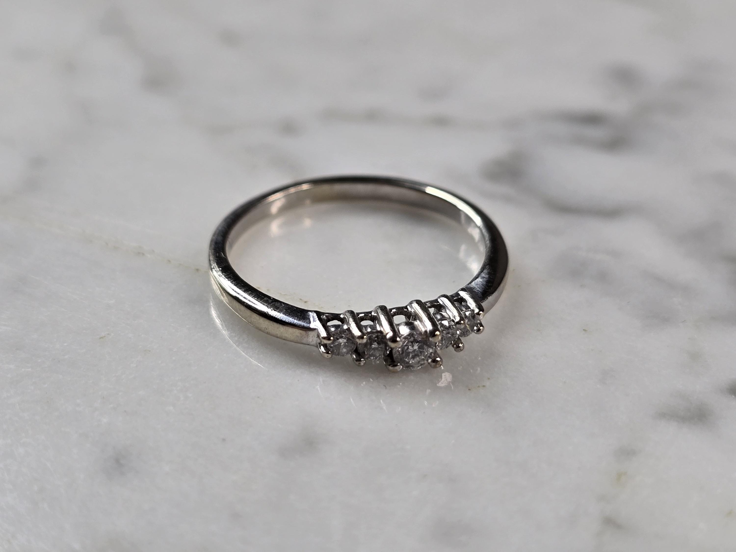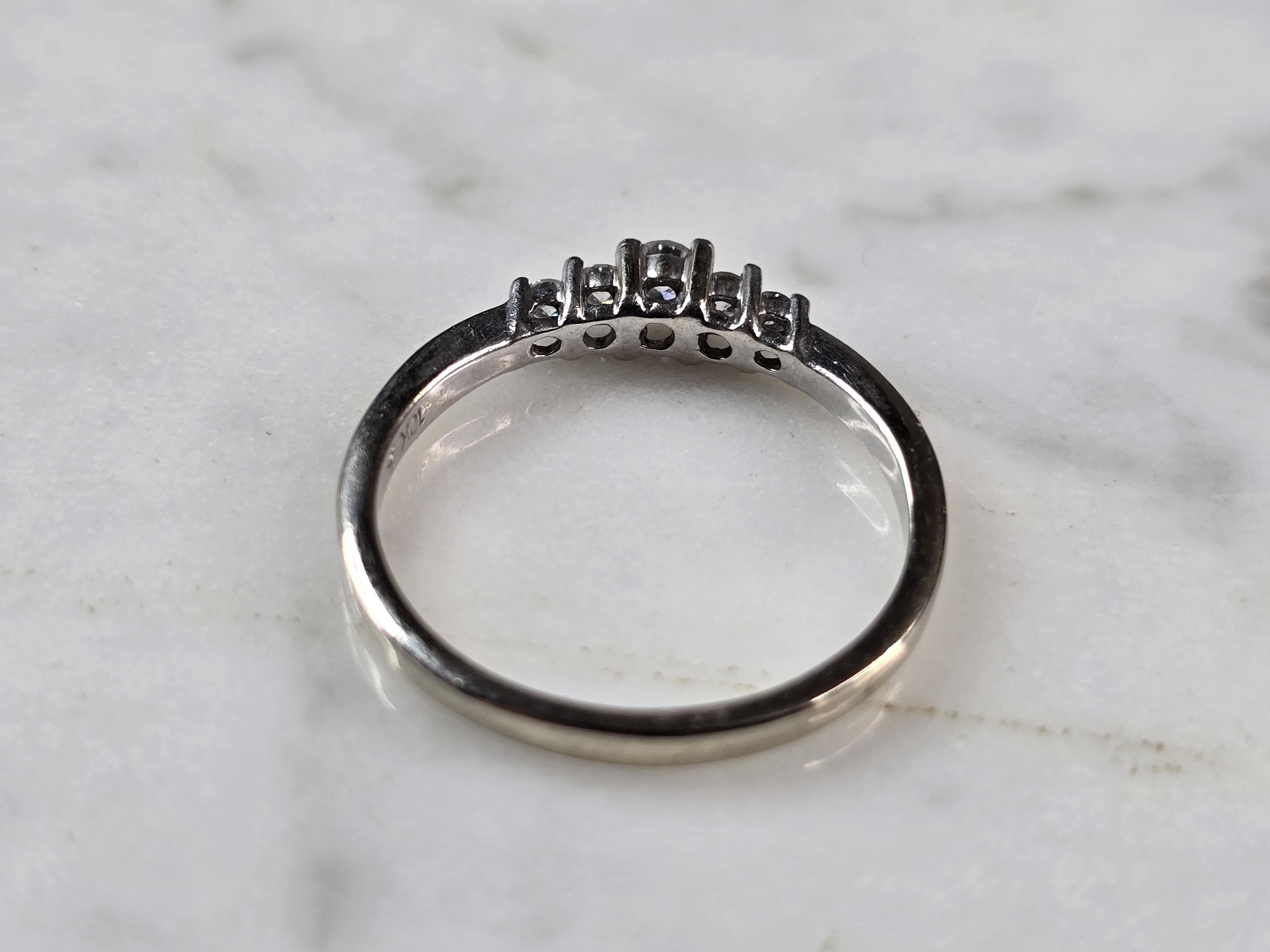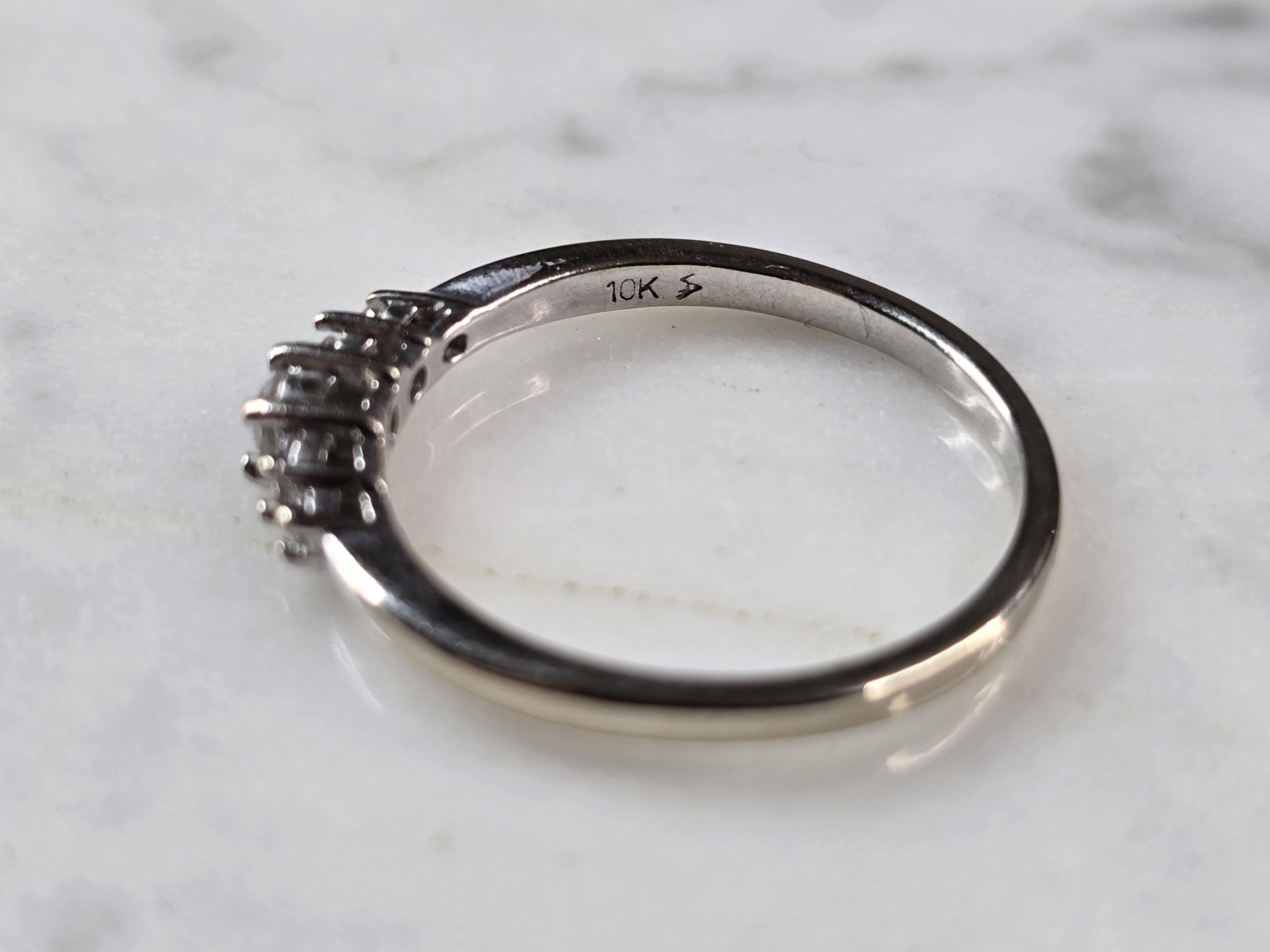 FOR SALE IS THIS LOVELY VINTAGE 10K WHITE GOLD DIAMOND RING WITH A TOTAL OF ABOUT .15cts OF DIAMONDS. THE TOTAL WEIGHT IS 2.0g, AND IS A SIZE 7.25. RING MEASURES 1/8" WIDE. RING IS MARKED 10k ON THE INSIDE OF THE BAND. ANY QUESTIONS PLEASE DONT HESITATE TO ASK. BE SURE TO CHECK OUT SOME OF OUR OTHER GREAT ITEMS UP FOR SALE. THANK YOU.