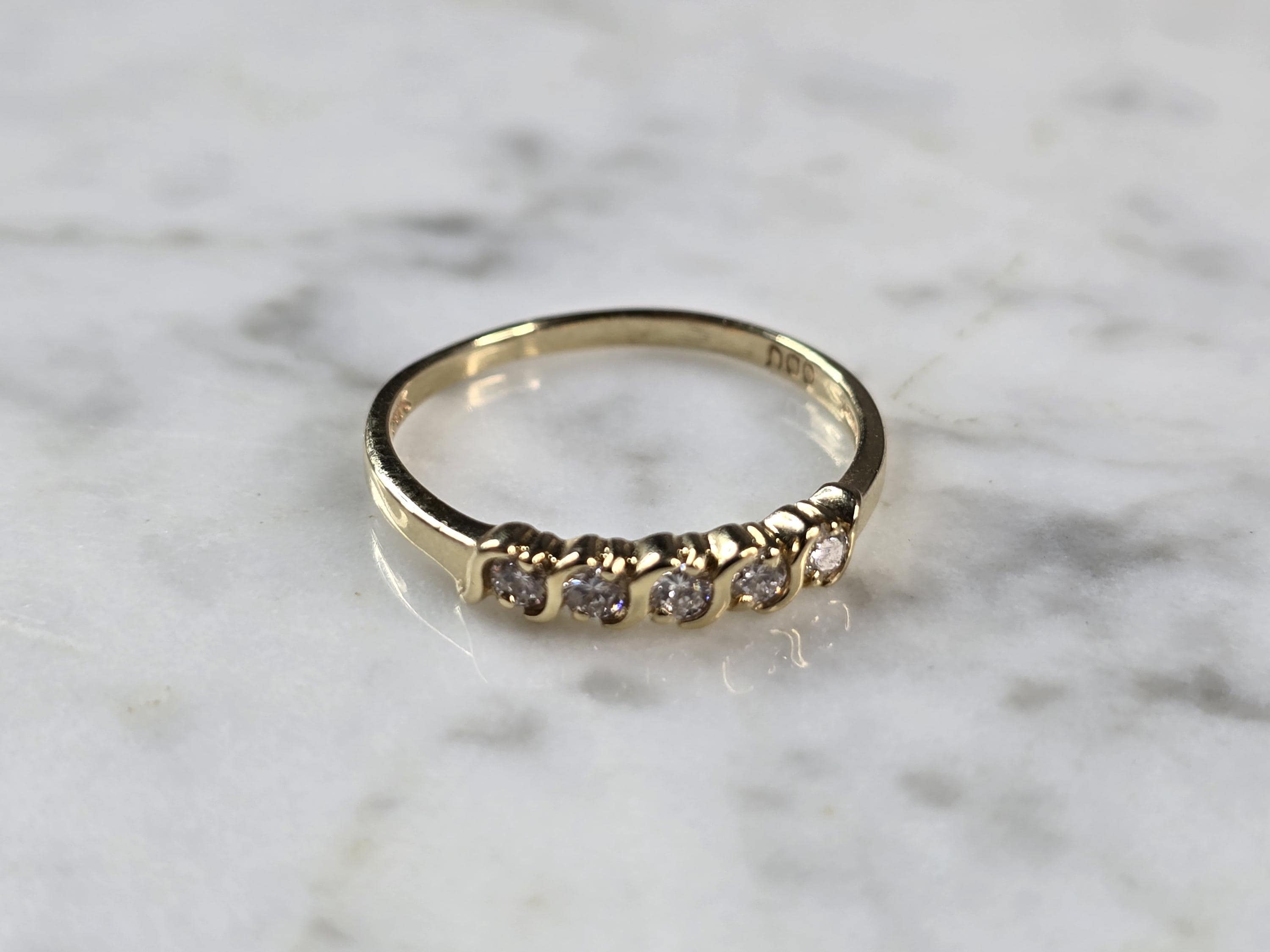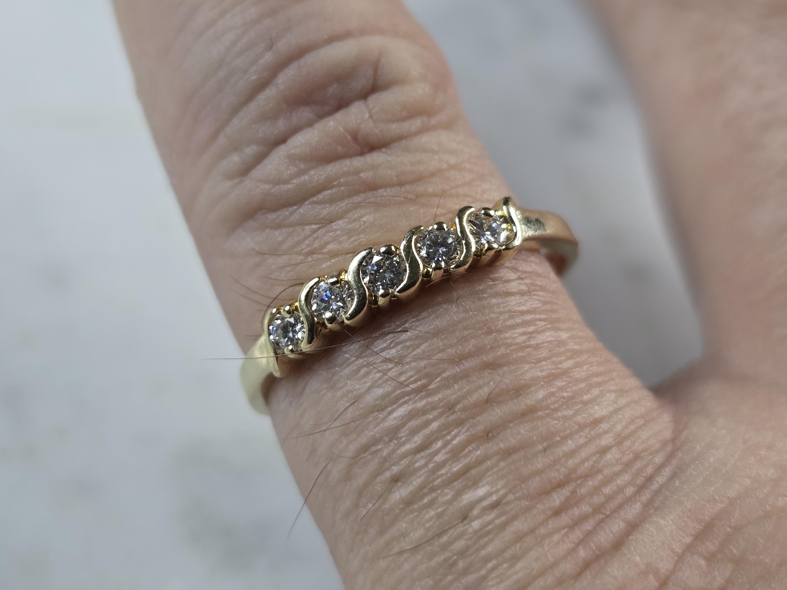 A WOMENS VINTAGE ESTATE 14K YELLOW GOLD DIAMOND RING. THE RING WEIGHS 1.8g, AND IS A SIZE 8.5. THE CARAT WEIGHT OF THE DIAMONDS ARE ABOUT 0.25cts. THE WIDTH OF THE RING IS ABOUT 1/8". ANY QUESTIONS PLEASE ASK PRIOR TO BIDDING. BE SURE TO CHECK OUT SOME OF MY OTHER GREAT ITEMS UP FOR SALE. THANK YOU