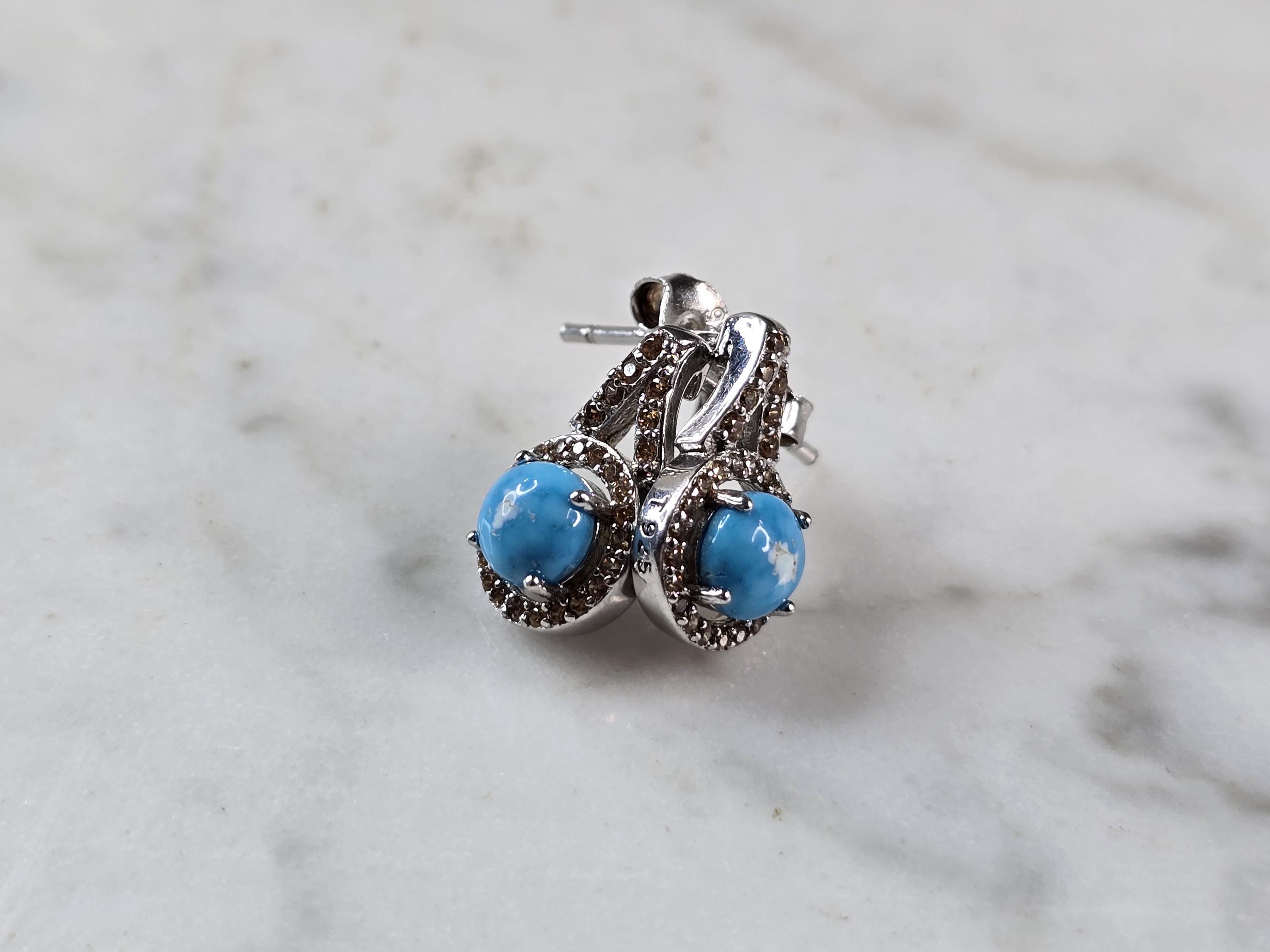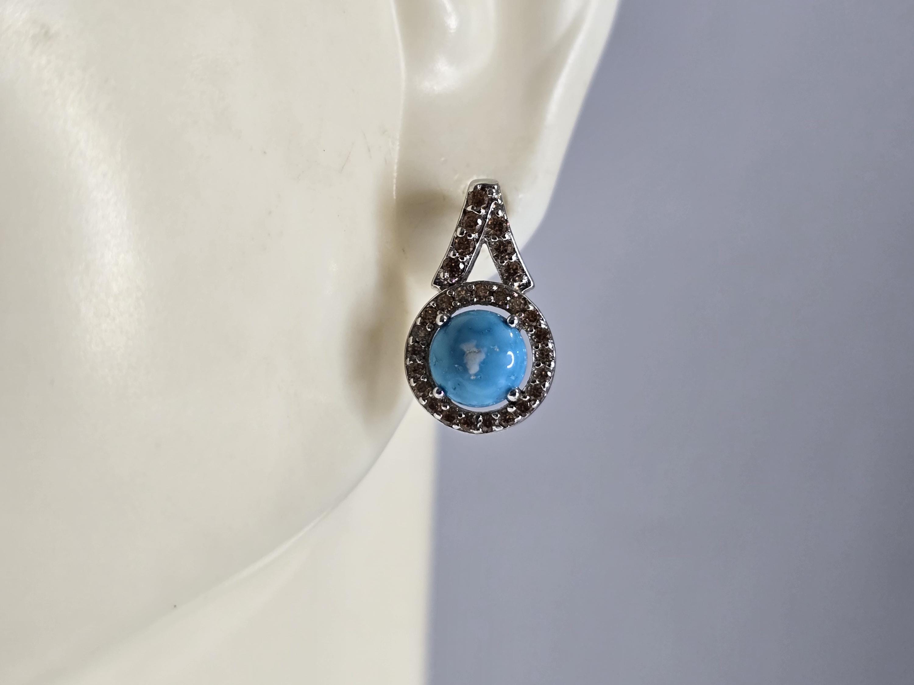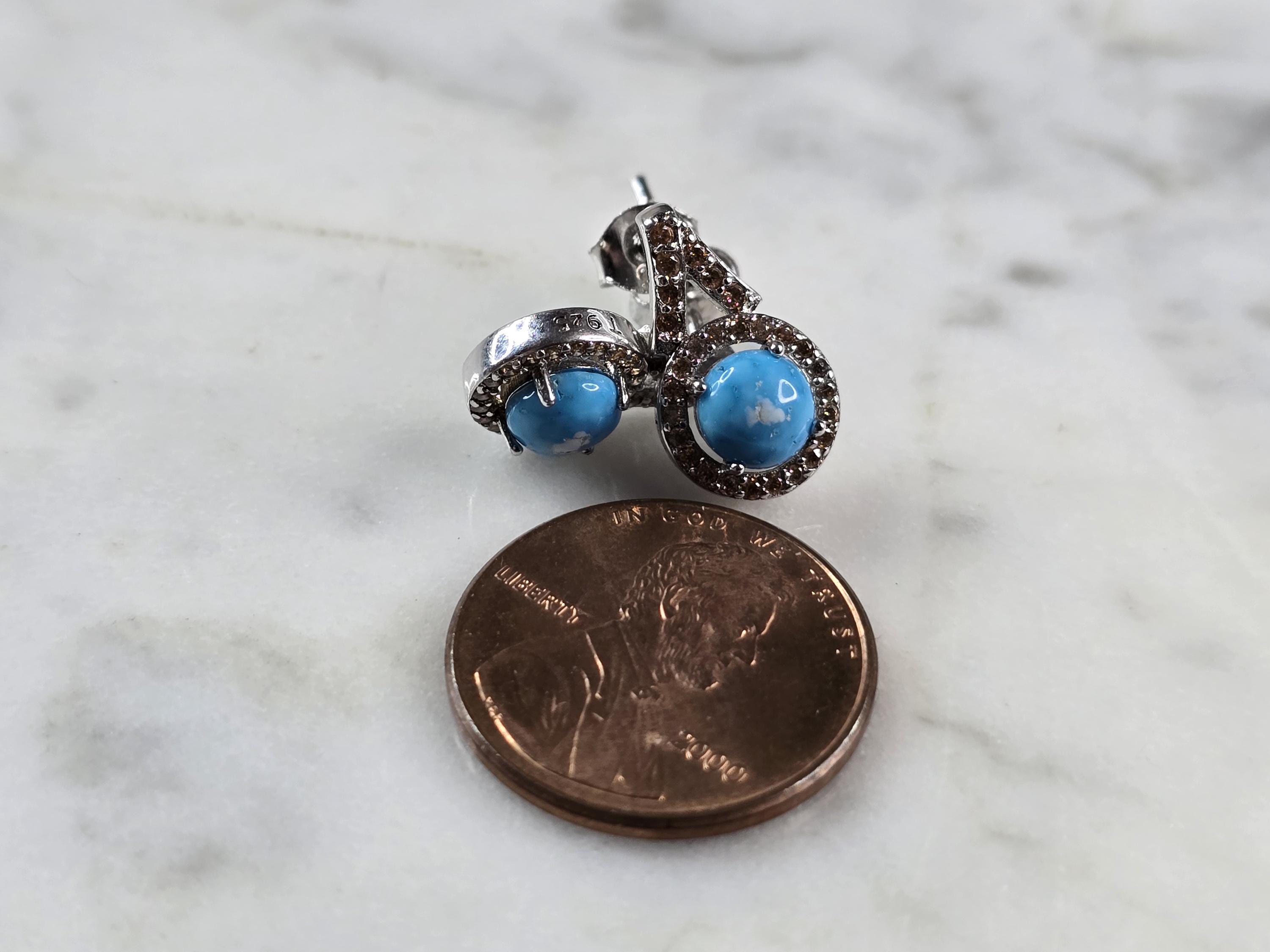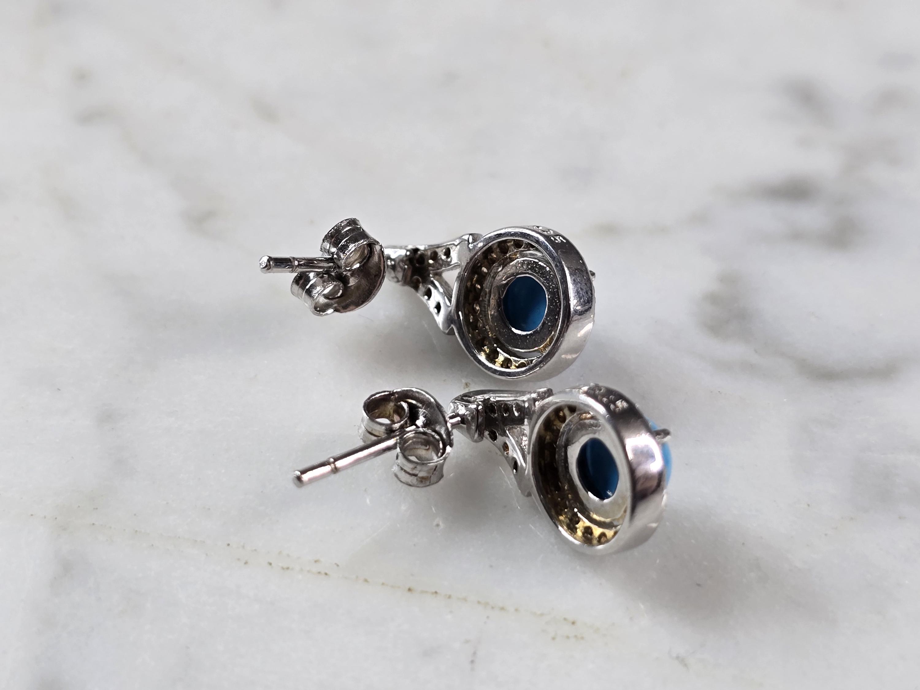 A PAIR OF WOMENS VINTAGE ESTATE STERLING SILVER TURQUOISE EARRINGS THAT WEIGHS 2.3g, AND MEASURES 1/2" LONG BY 3/8" WIDE. NOT SURE IF THE STONES ARE NATUARAL OR MAN MADE. ANY QUESTIONS, PLEASE DO NOT HESITATE TO ASK. BE SURE TO CHECK OUT SOME OF MY OTHER GREAT ITEMS UP FOR SALE. THANK YOU