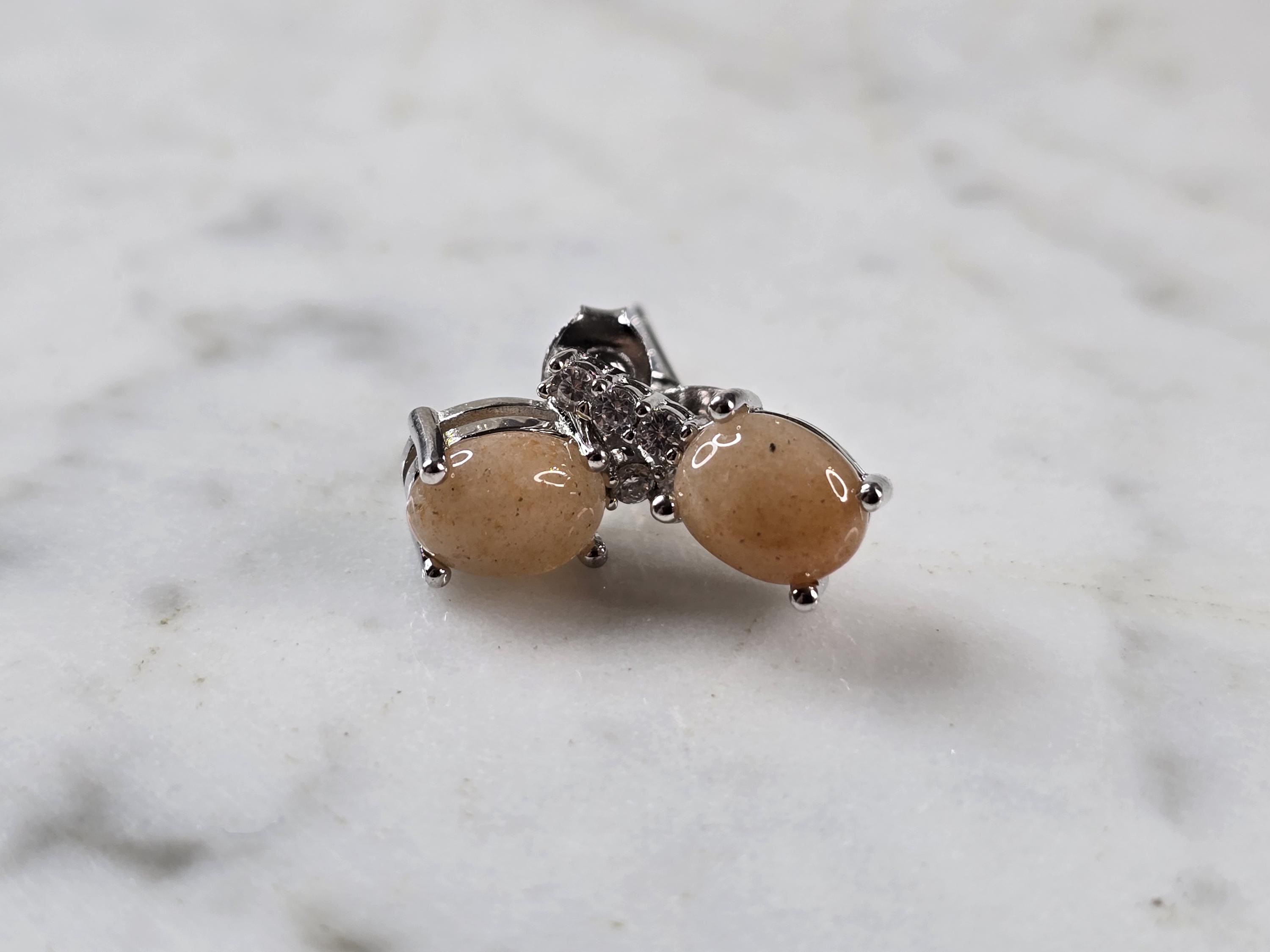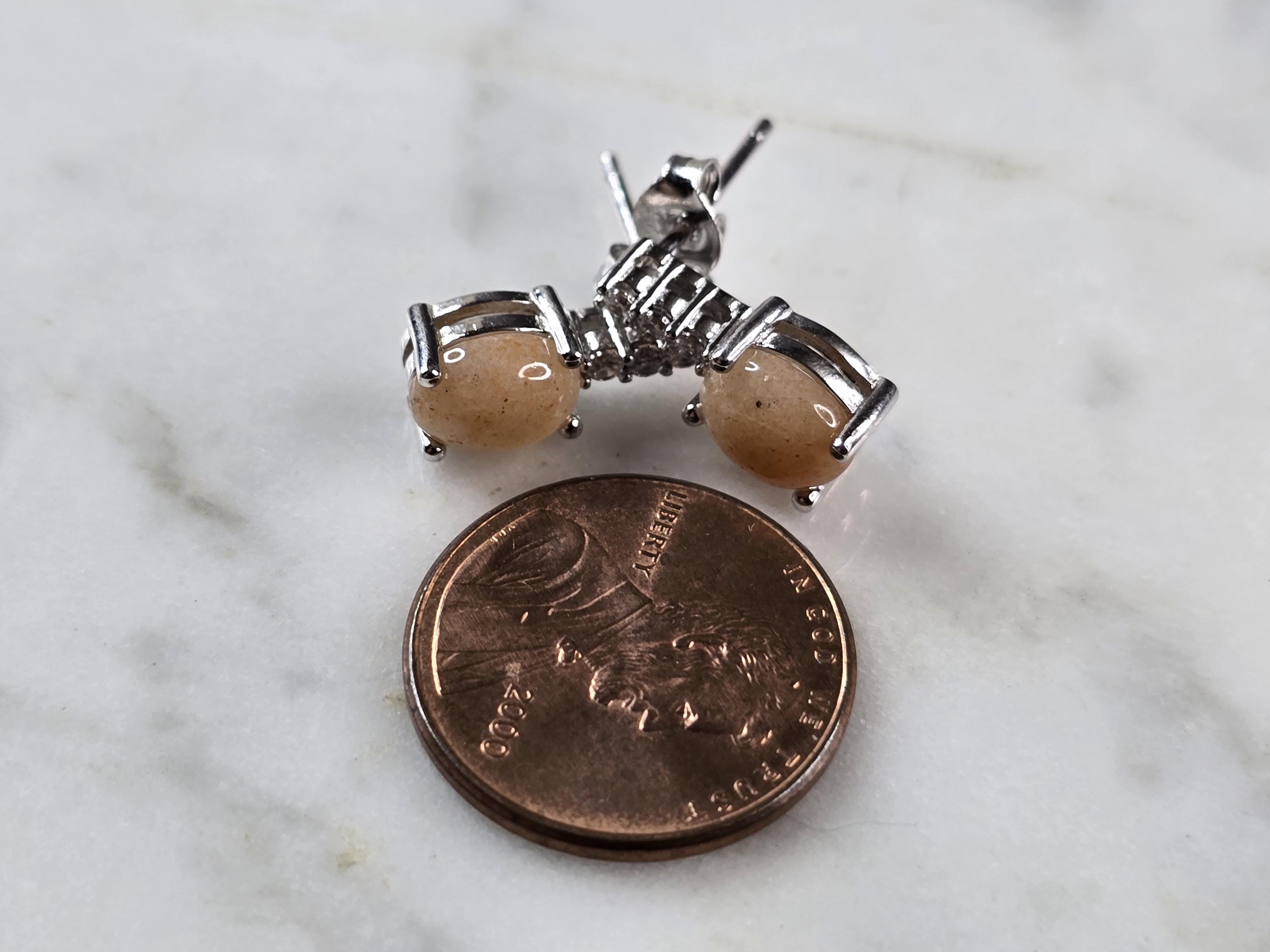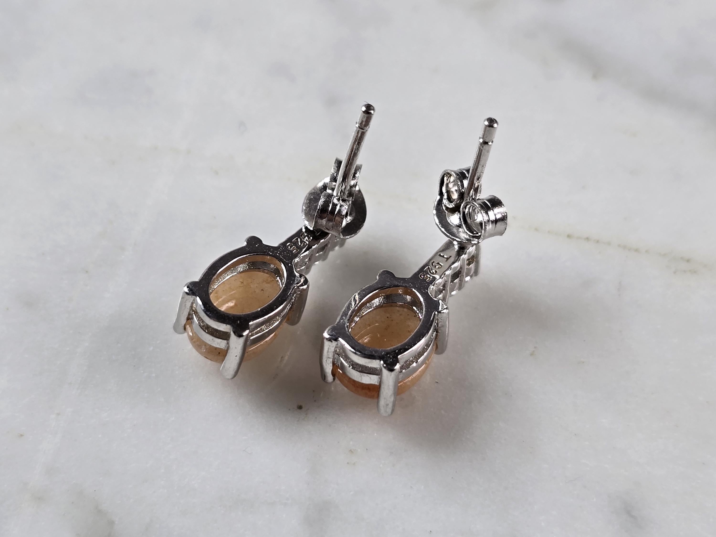 A PAIR OF WOMENS VINTAGE ESTATE STERLING SILVER CALCITE CABOCHON COLORED EARRINGS. NOT SURE IF STONES ARE NATURAL OR MAN MADE. THE EARRINGS WEIGH 2.3g AND MEASURE 1/2" LONG BY 1/4" WIDE. ANY QUESTIONS PLEASE DO NOT HESITATE TO ASK. BE SURE TO CHECK OUT SOME OF OUR OTHER GREAT PIECES OF JEWELRY FOR SALE. THANK YOU.