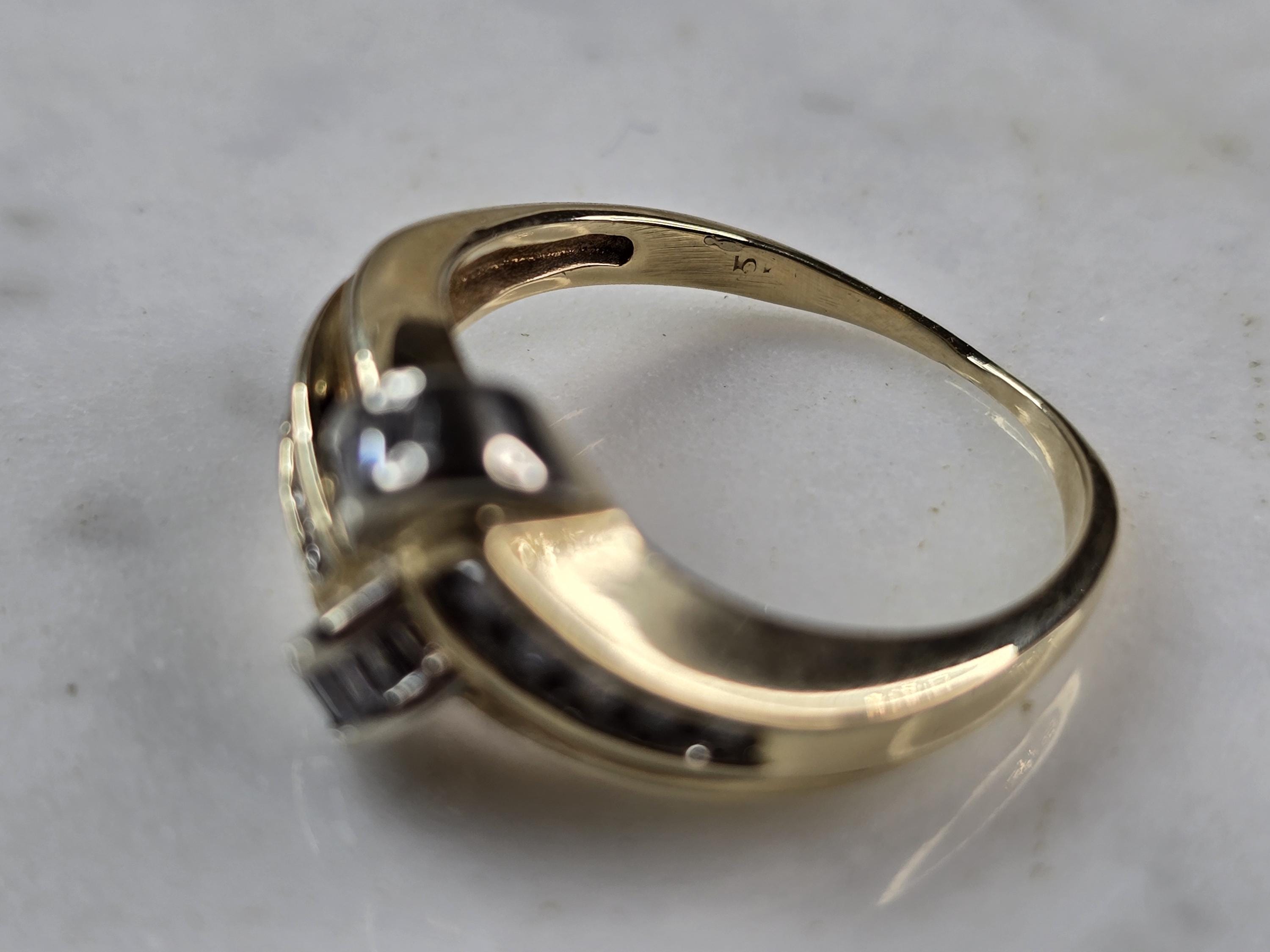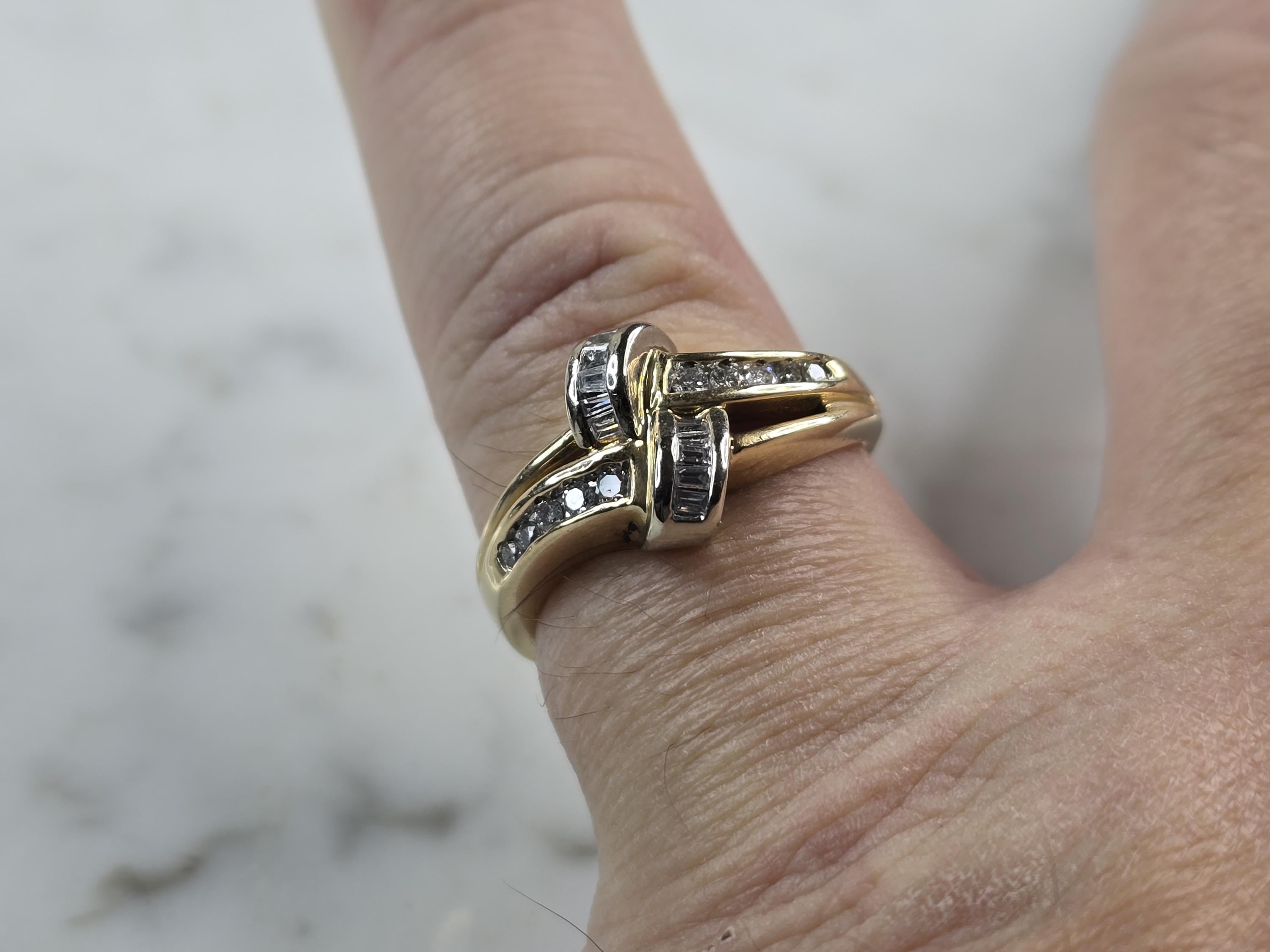 A WOMENS VINTAGE ESTATE 10K YELLOW GOLD RING WITH A TOTAL OF ABOUT .25cts OF DIAMONDS. THE TOTAL WEIGHT IS 4.2g, AND IS A SIZE 7.75. THE WIDTH OF THE FACE IS 3/8". ANY QUESTIONS PLEASE DONT HESITATE TO ASK. BE SURE TO CHECK OUT SOME OF OUR OTHER GREAT ITEMS UP FOR SALE. THANK YOU.