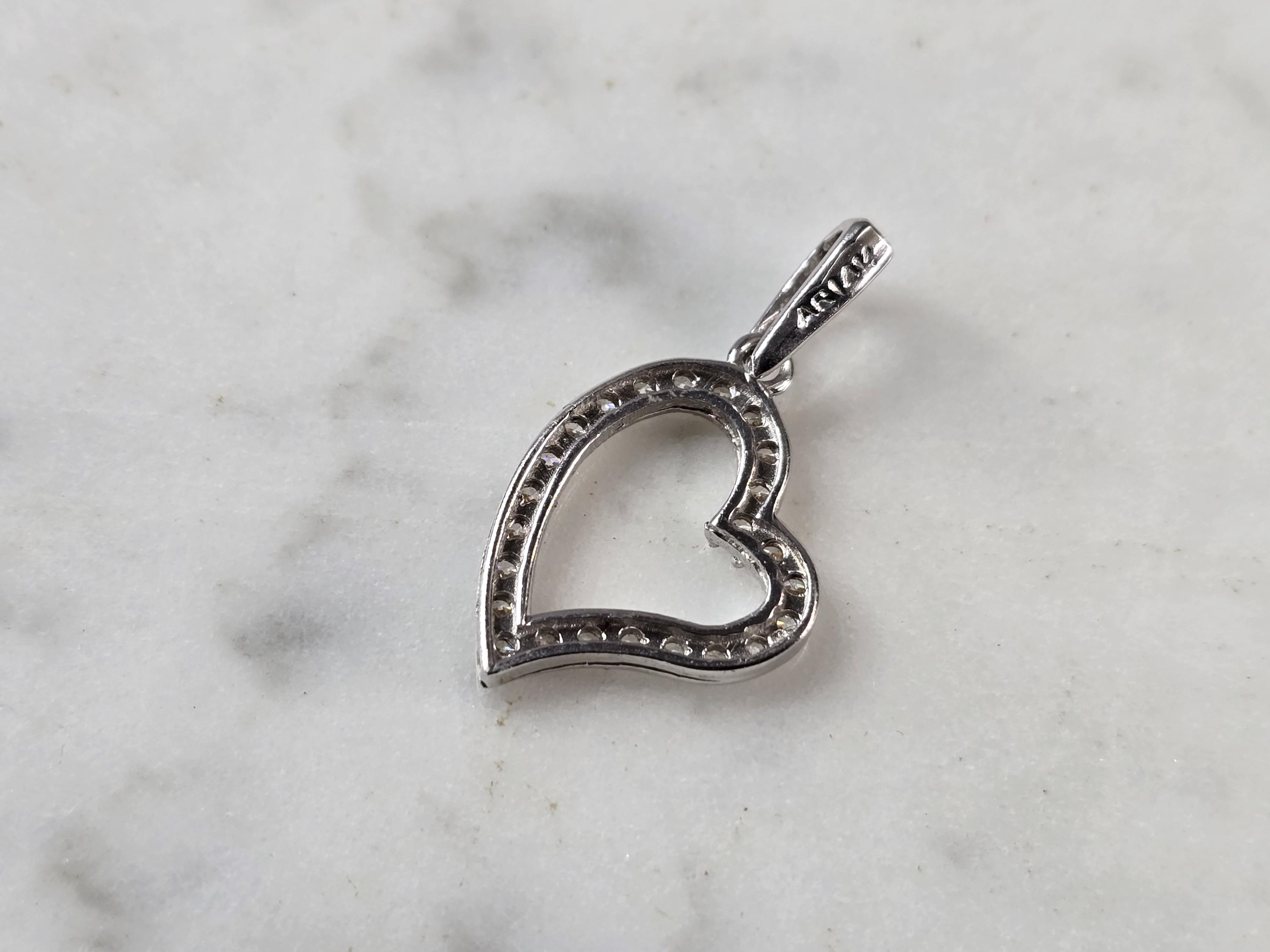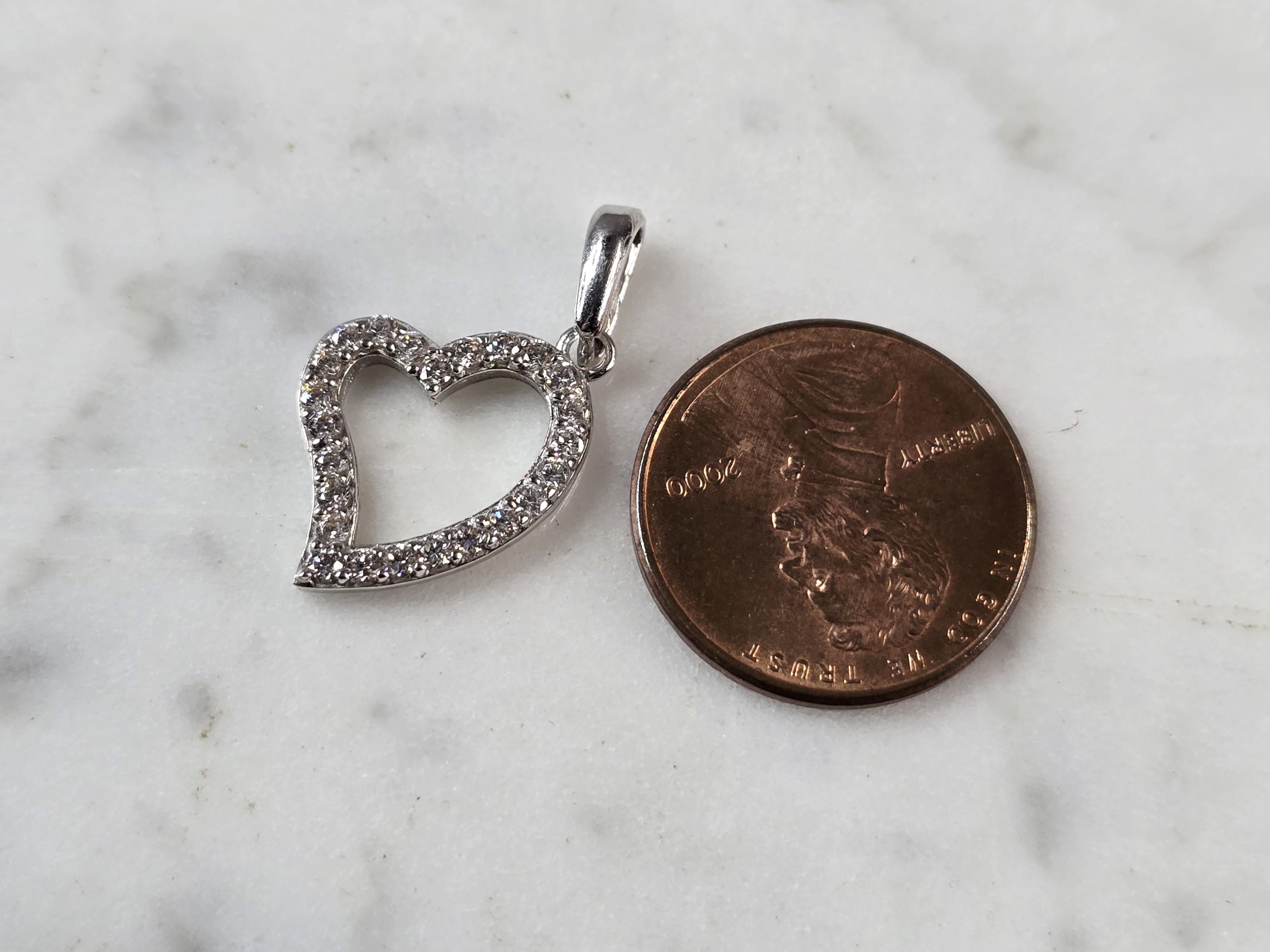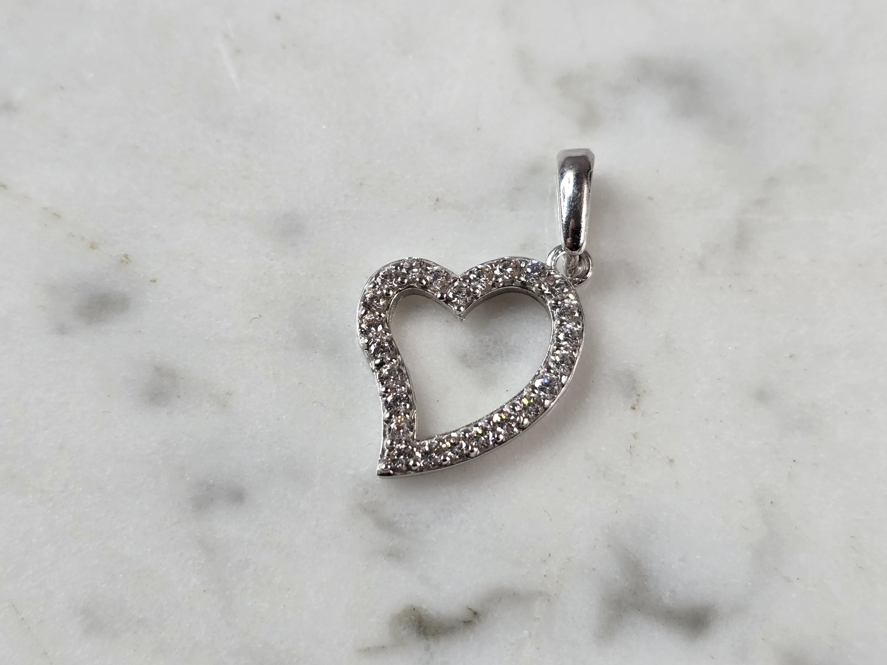 VINTAGE ESTATE 14K WHITE GOLD HEART PENDANT FIRIE CUBIC ZIRCONIA CHIPS. THE TOTAL WEIGHT IS 1.8g. THE PENDANT MEASURES 1" LONG BY 1/2" WIDE. MAKES A GREAT GIFT FOR THAT SOMEONE SPECIAL. ANY QUESTIONS, PLEASE ASK. BE SURE TO CHECK OUT SOME OF MY OTHER GREAT ITEMS FOR SALE.