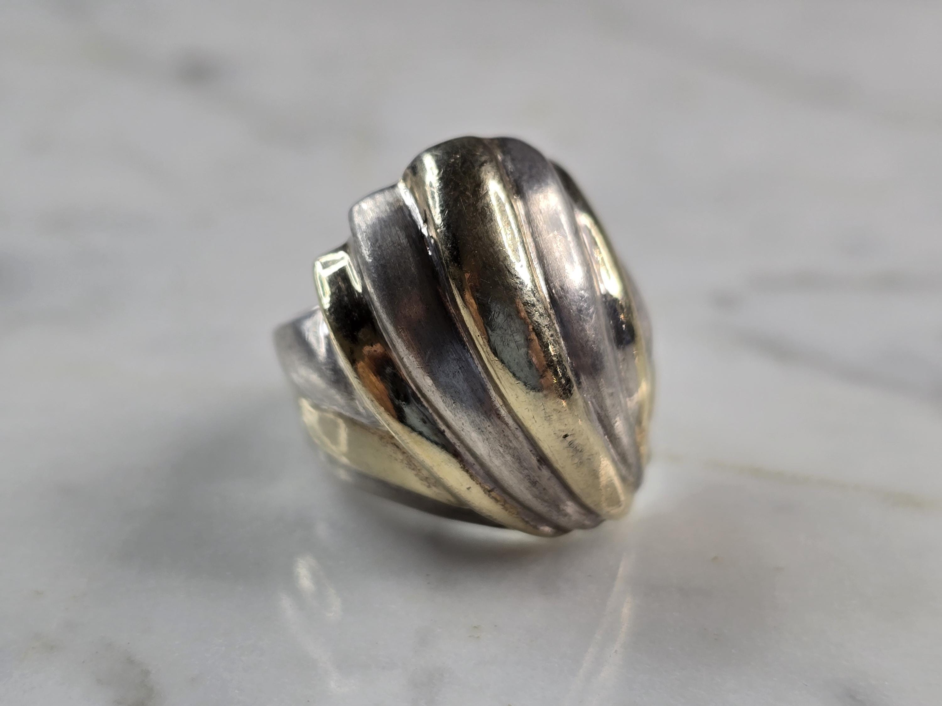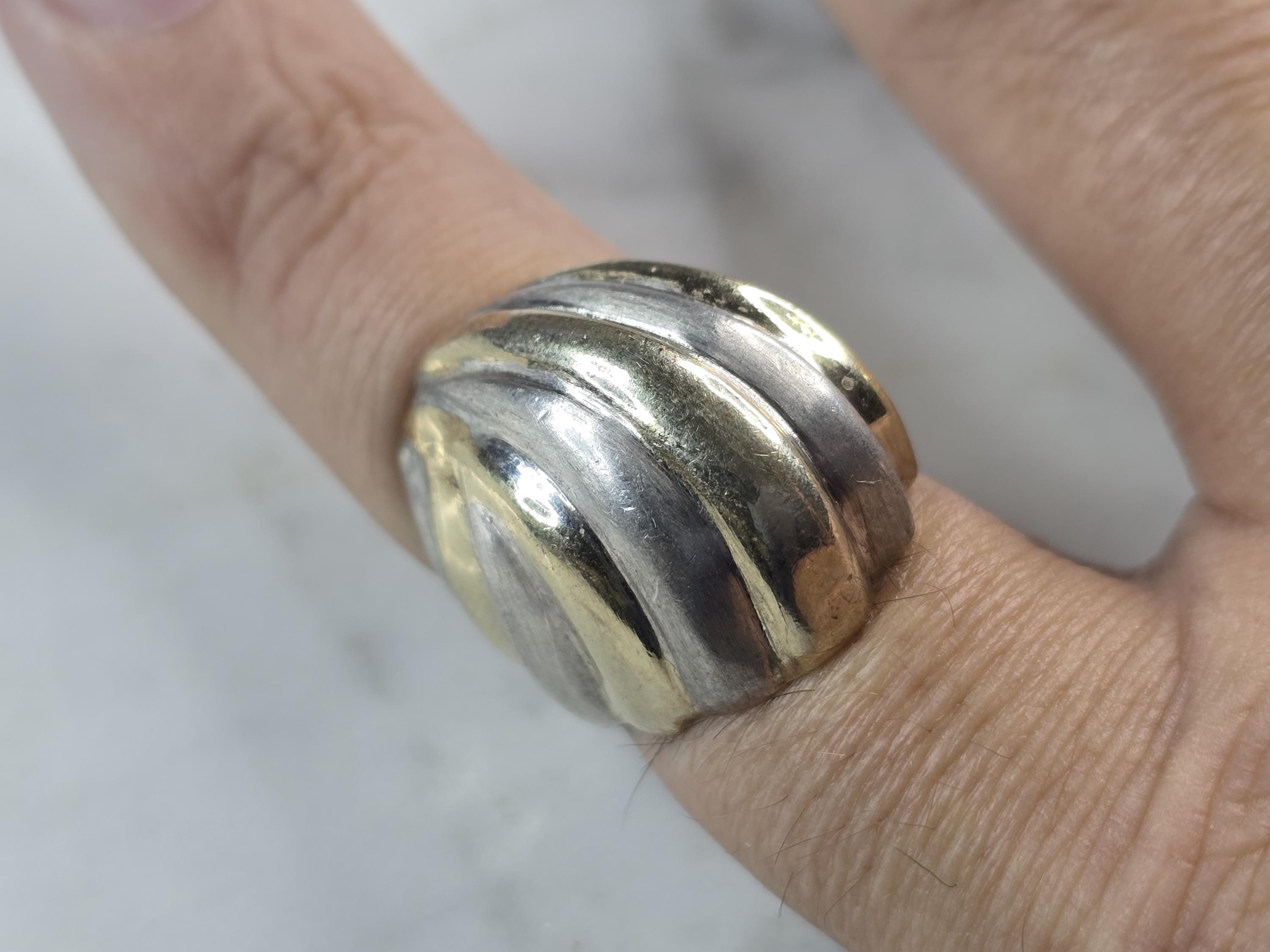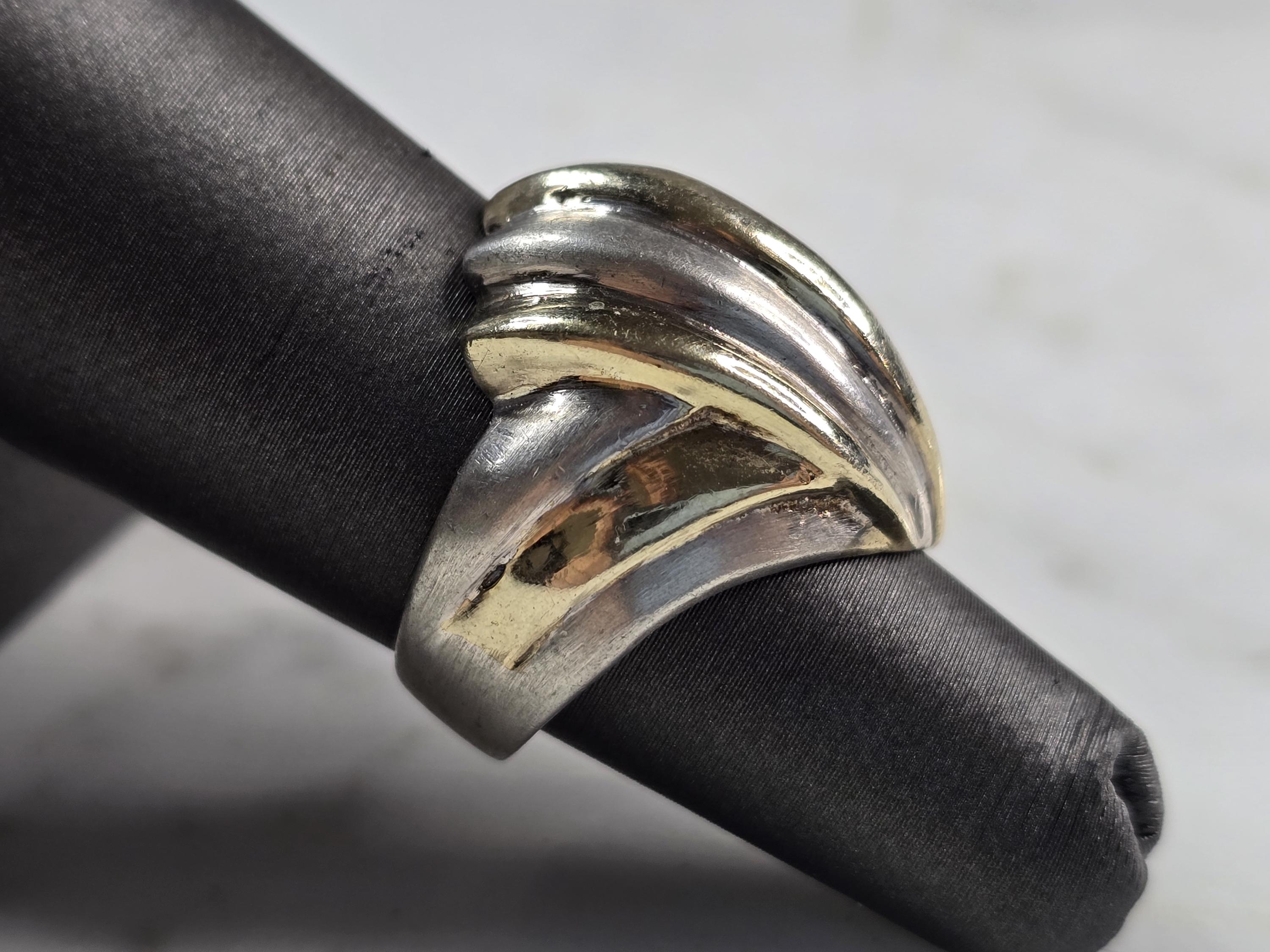 FOR SALE IS THIS WONDERFUL WOMEN'S STERLING SILVER GOLD TONE RING WITH A MODERN CONTEMPORARY DESIGN. THE RING WEIGHS 8.1g. THE SIZE OF THE RING IS A 5.75. ANY QUESTIONS PLEASE DO NOT HESITATE TO ASK. BE SURE TO CHECK OUT SOME OF MY OTHER GREAT ITEMS UP FOR SALE. THANK YOU.
