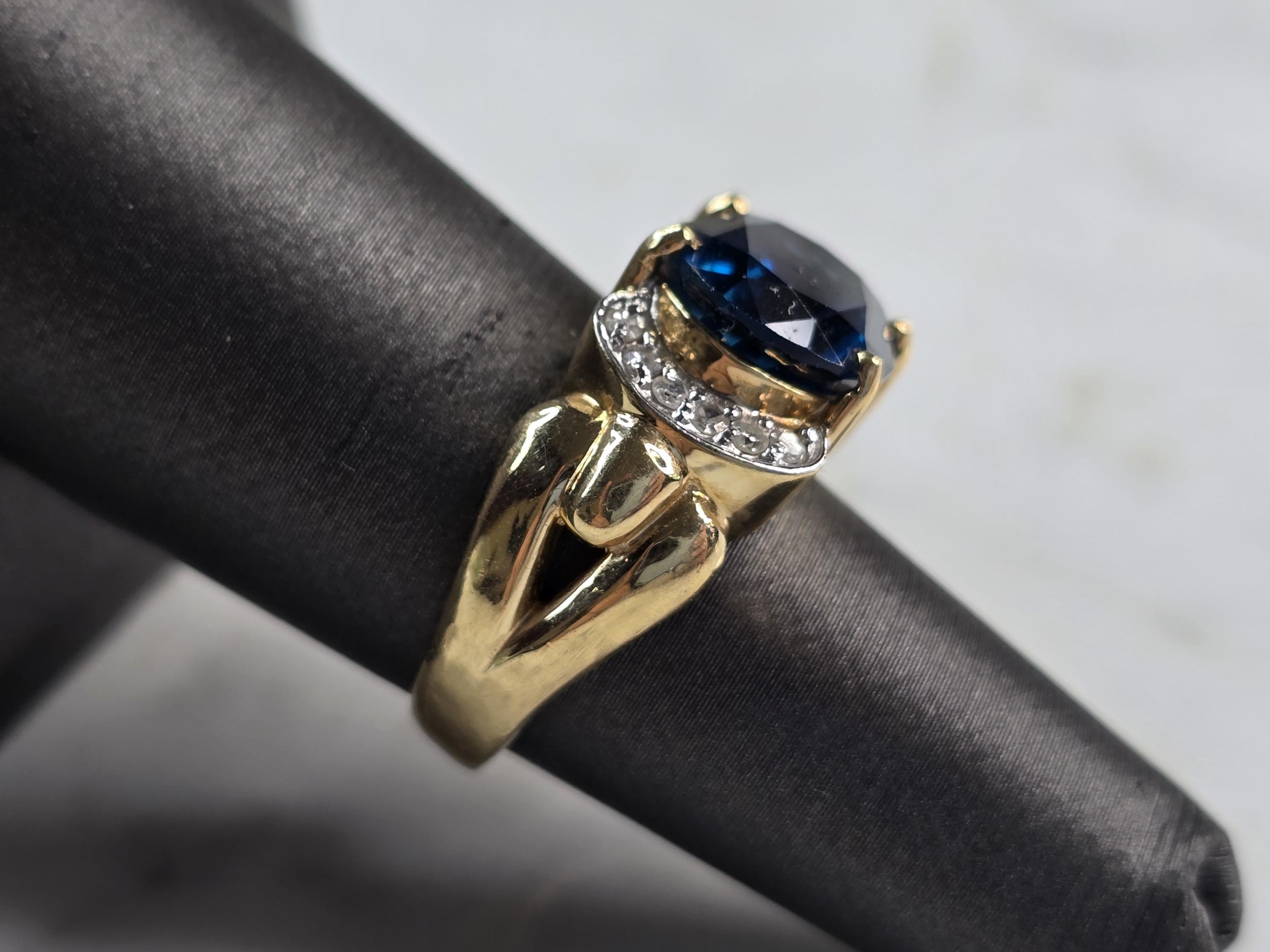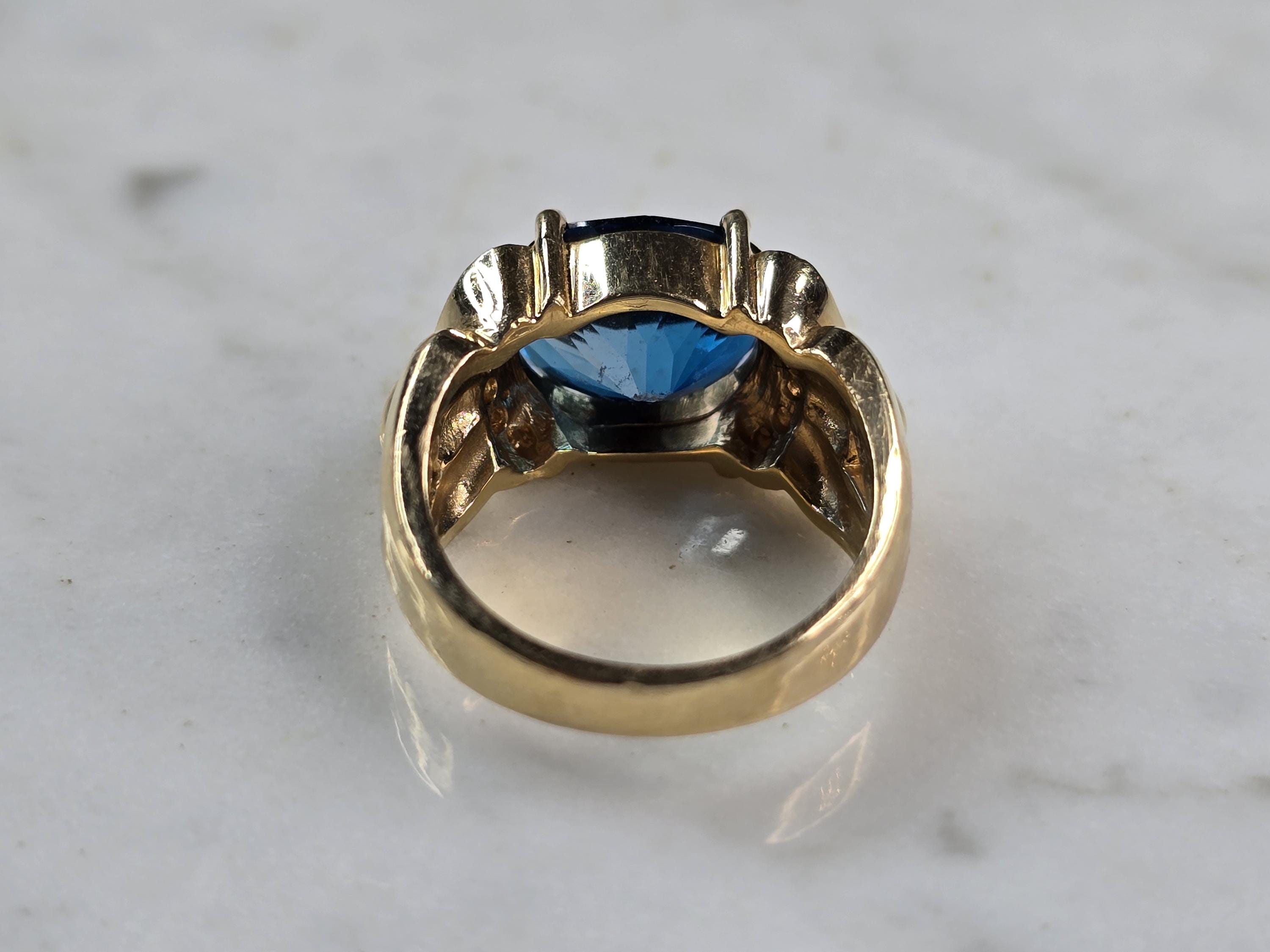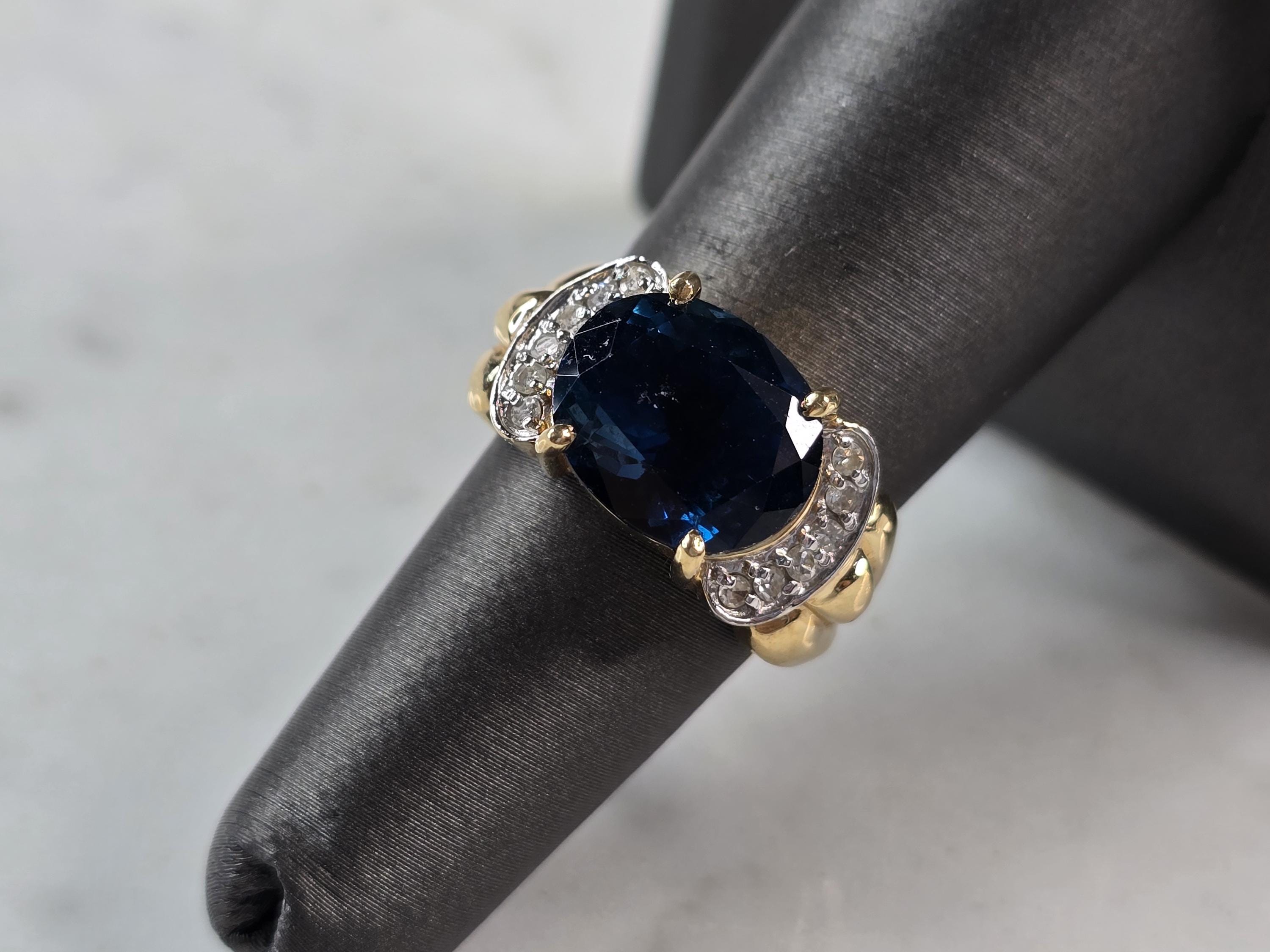 A WOMENS VINTAGE ESTATE 14K YELLOW GOLD RING WITH WHAT APPEARS TO BE A BLUE ZIRCON STONE ACCENTED BY TINY DIAMONDS. DIAMONDS ARE ABOUT .36cts. NOT SURE IF IT IS A REAL ZIRCON OR MAN MADE. THE RING WEIGHS 9.3g AND IS A SIZE 6.25. ANY QUESTIONS PLEASE DO NOT HESITATE TO ASK. BE SURE TO CHECK OUT SOME OF MY OTHER GREAT ITEMS UP FOR SALE. THANK YOU.