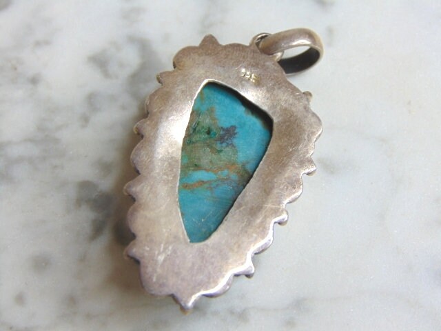 A WOMENS VINTAGE ESTATE STERLING SILVER TURQUOISE STONE PENDANT. THE PENDANT WEIGHS 22.7g, AND MEASURES 2 1/2" LONG BY 1 1/4" WIDE. MAKES A GREAT GIFT FOR THAT SOMEONE SPECIAL. ANY QUESTIONS, PLEASE ASK. BE SURE TO CHECK OUT OUR OTHER ITEMS FOR SALE.