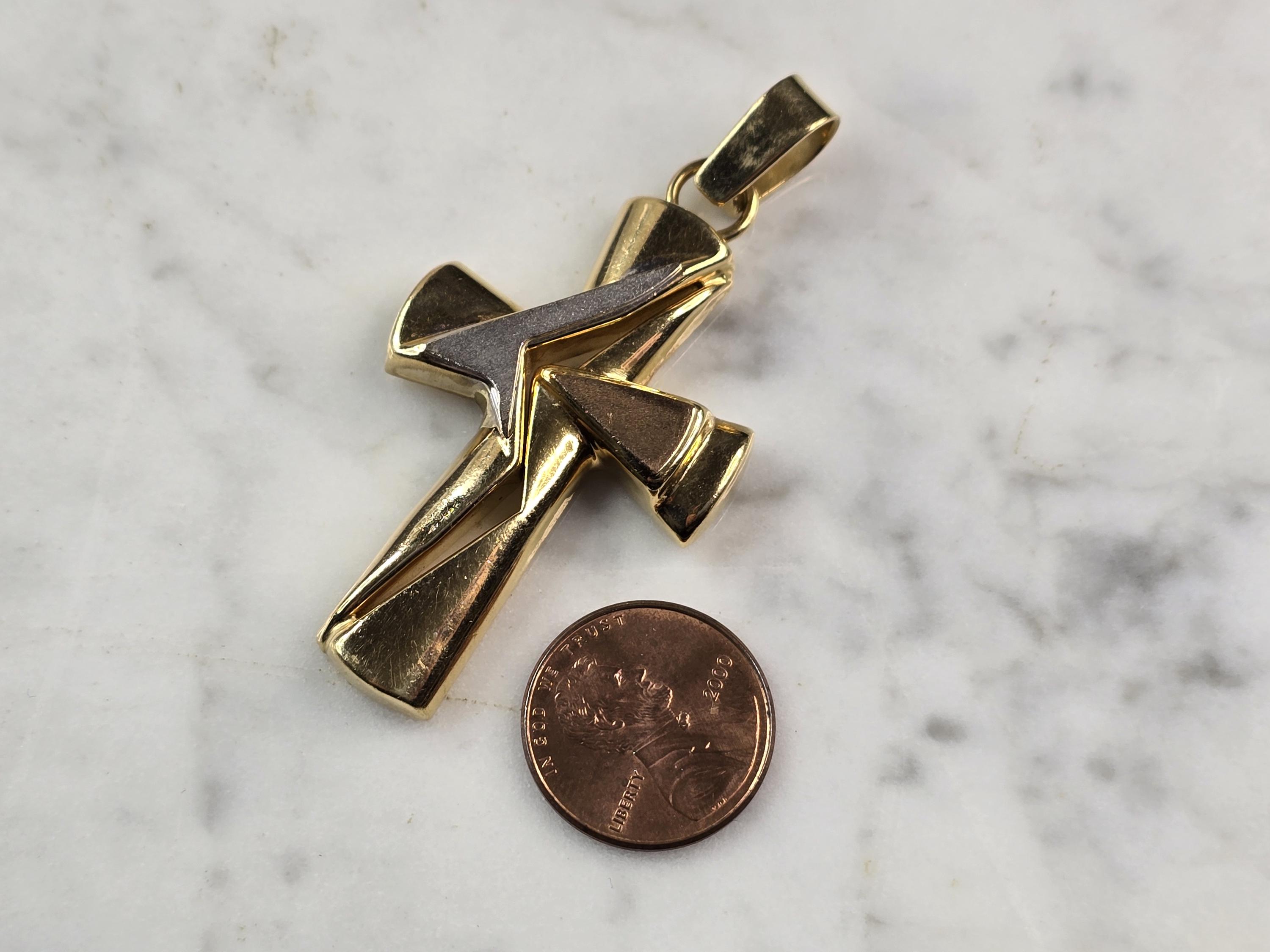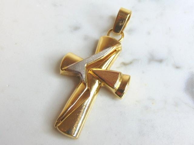 A WOMENS VINTAGE 18K YELLOW GOLD RELIGIOUS CROSS PENDANT . THE TOTAL WEIGHT IS 10.0g. THE PENDANT MEASURES 2 3/8" LONG BY 1 1/8" WIDE. ANY QUESTIONS PLEASE DONT HESITATE TO ASK. BE SURE TO CHECK OUT SOME OF OUR OTHER GREAT ITEMS UP FOR SALE. THANK YOU.
