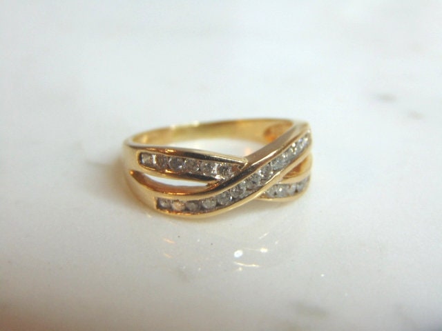 A WOMENS 14K YELLOW GOLD DIAMOND RING. THE RING WEIGHS 4.1g, AND IS A SIZE 8.5. THERE ARE ABOUT .50cts OF DIAMONDS. ANY QUESTIONS, PLEASE DO NOT HESITATE TO ASK. THIS MAKES A WONDERFUL GIFT FOR THAT SOMEONE SPECIAL. BE SURE TO CHECK OUT SOME OF MY OTHER GREAT ITEMS UP FOR SALE. THANK YOU.