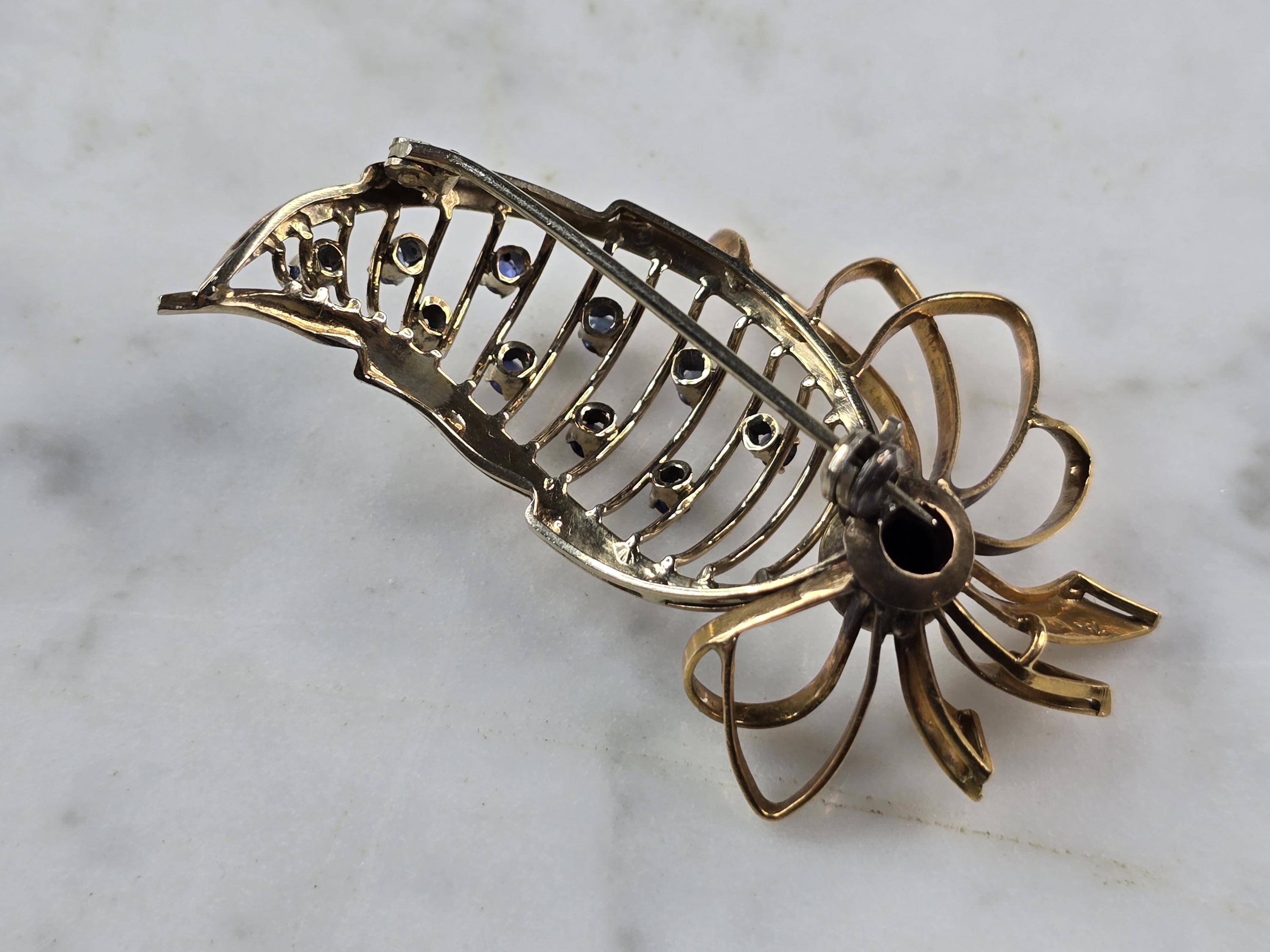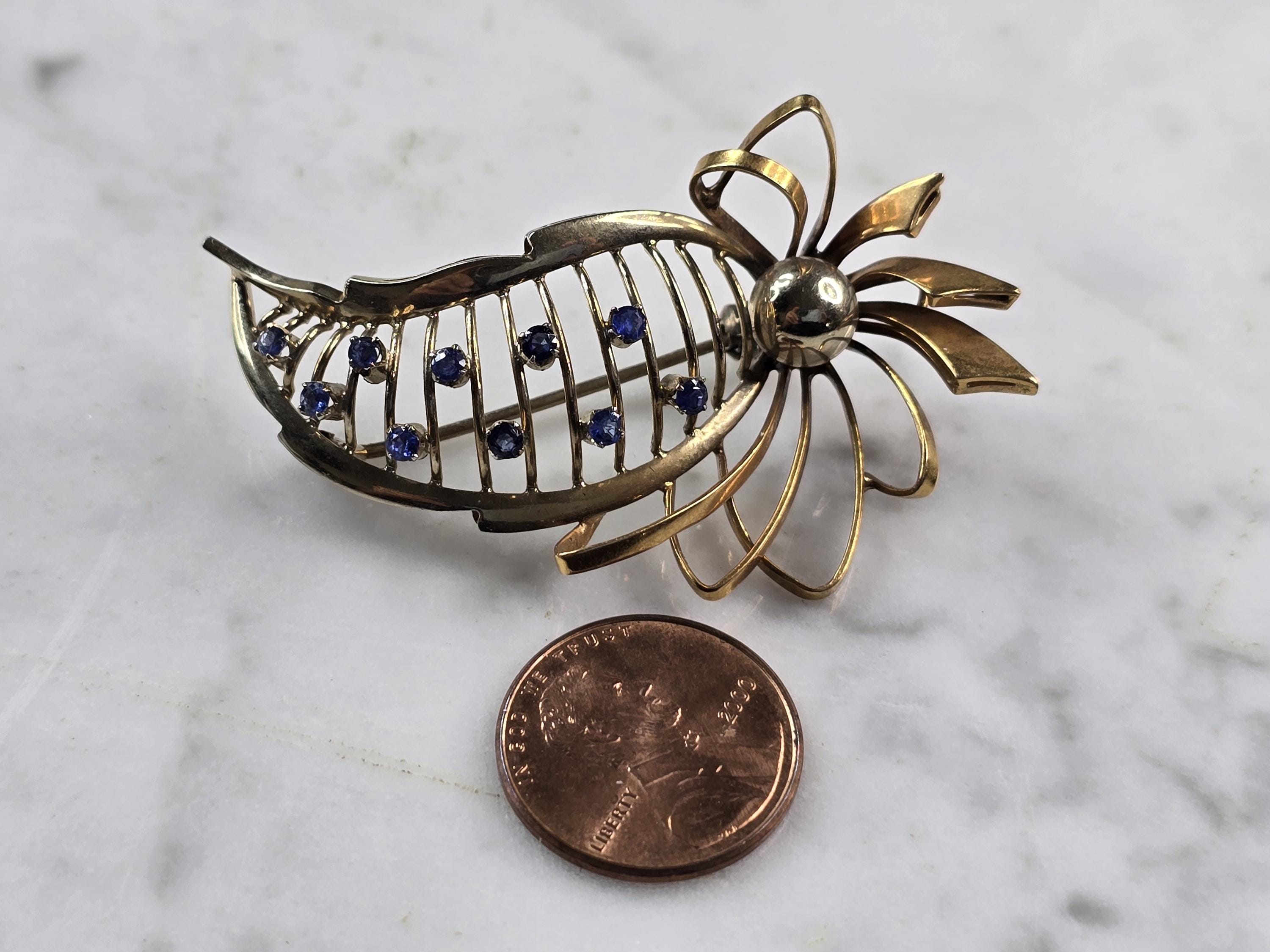 FOR SALE IS THIS LOVELY VINTAGE 18K YELLOW GOLD BROOCH WITH BLUE SAPPHIRES. THE BROOCH WEIGHS 10.4g. THE BROOCH MEASURES 2 1/8" LONG BY 1 1/4" WIDE. PIECE IS MARKED "750". MAKES A GREAT GIFT FOR THAT SPECIAL SOMEONE. ANY QUESTIONS, PLEASE ASK. BE SURE TO CHECK OUT SOME OF OUR OTHER GREAT ITEMS. THANK YOU.