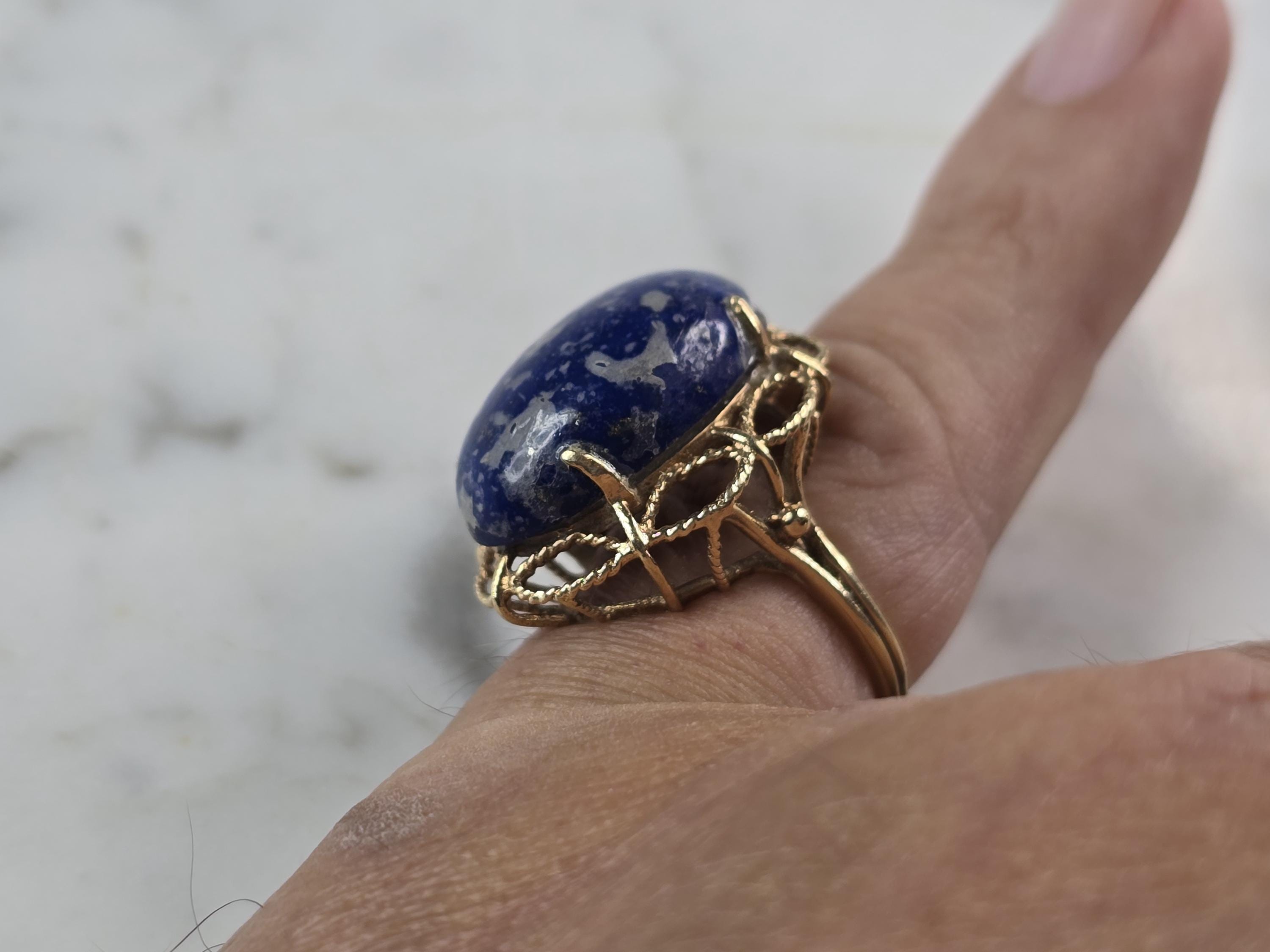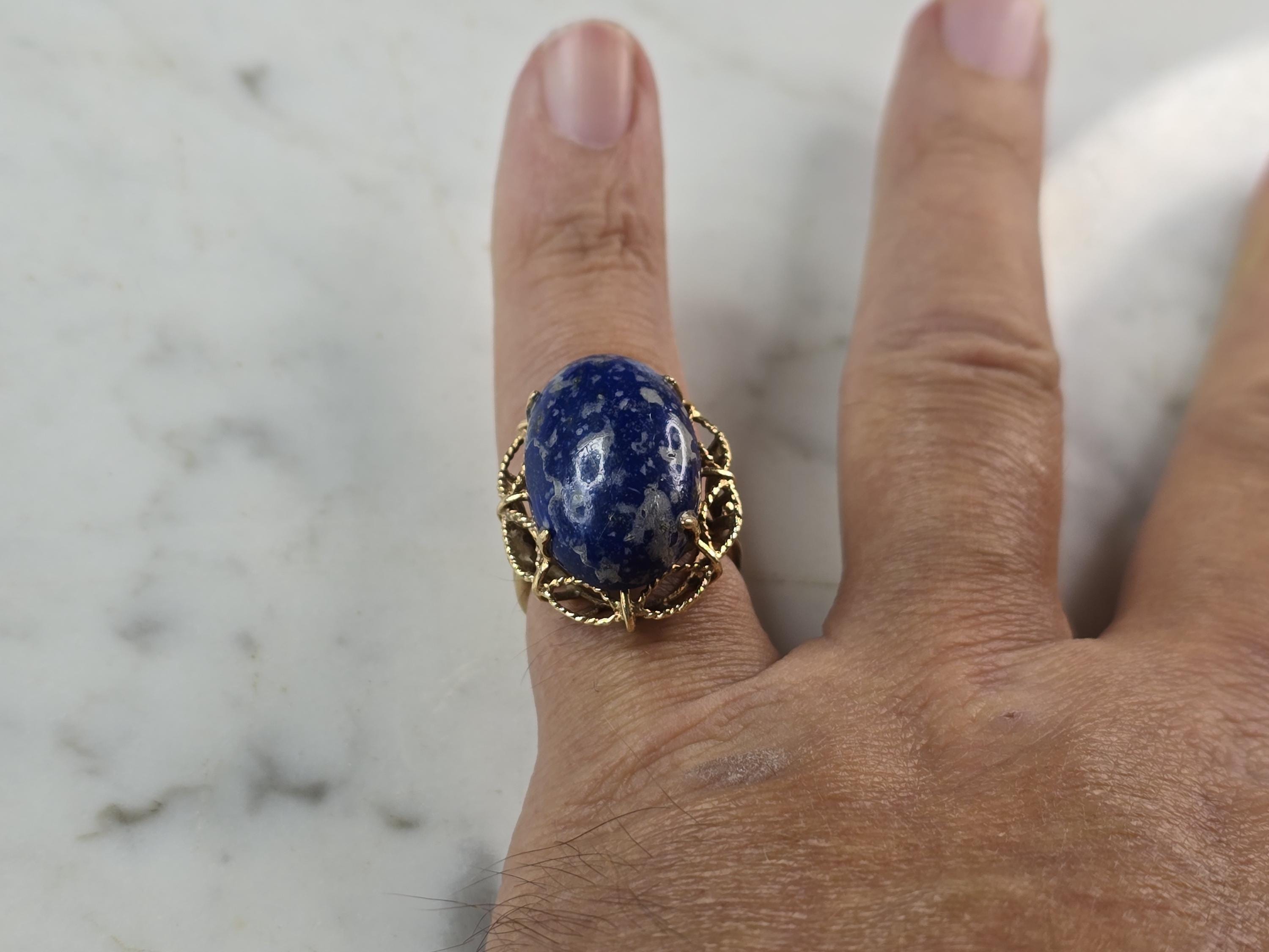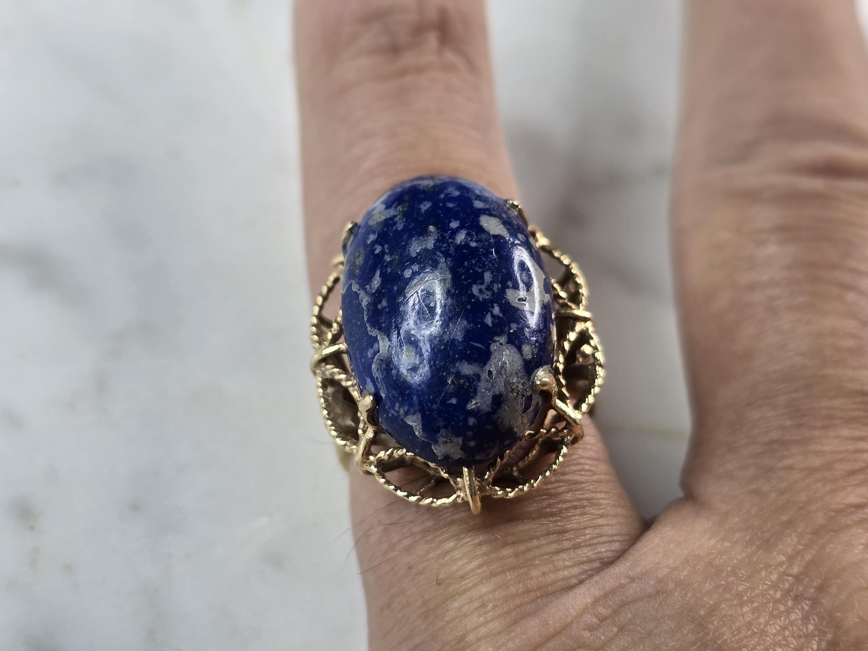 FOR SALE IS A LOVELY WOMENS VINTAGE ESTATE 14K YELLOW GOLD RING WITH A STRIKING BLUE LAPIS LAZULI STONE. THE RING SIZE IS 6.25, AND WEIGHS 7g. THIS WOULD MAKE A NICE GIFT FOR THAT SOMEONE SPECIAL. ANY OTHER QUESTIONS, PLEASE DO NOT HESITATE TO ASK. BE SURE TO CHECK OUT SOME OF MY OTHER GREAT ITEMS UP FOR SALE. THANK YOU.