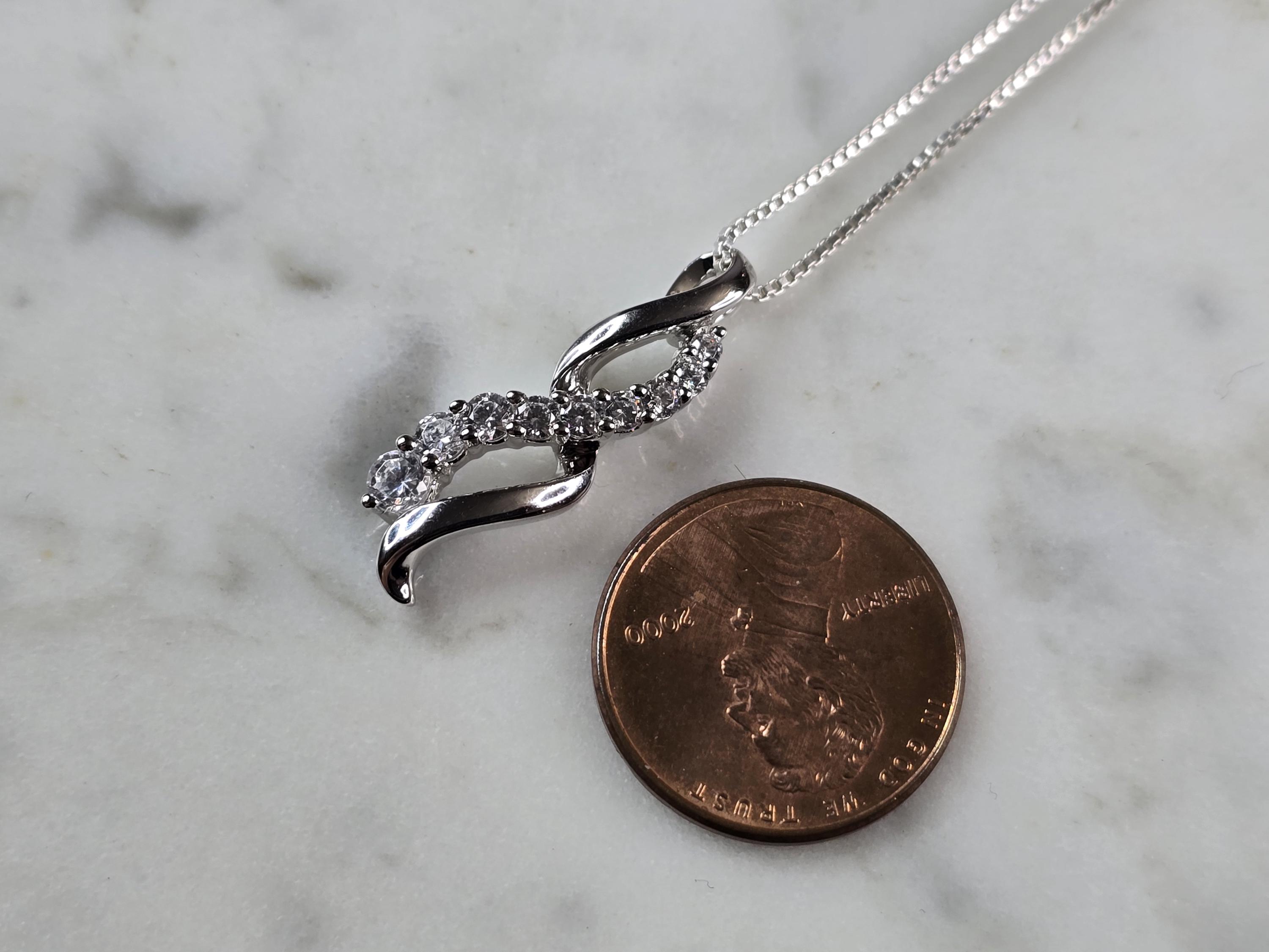 A BEAUTIFUL VINTAGE ESTATE WOMENS .925 STERLING SILVER CZ PENDANT WITH NECKLACE . THE PENDANT MEASURES 1" BY 1/4", NECKLACE MEASURES 18 1/8" AND WEIGHS 4.1g. WOULD MAKE A GREAT GIFT FOR THAT SPECIAL SOMEONE. ANY QUESTIONS PLEASE DO NOT HESITATE TO ASK. BE SURE TO CHECK OUT SOME OF MY OTHER GREAT ITEMS UP FOR SALE. THANK YOU.